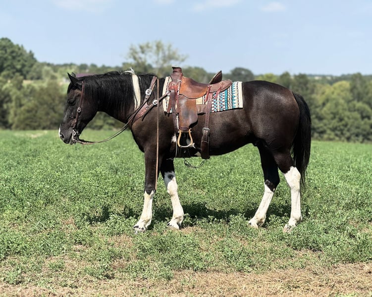ONLINE AUCTION Place your bids at www.PlatinumEquineAuction.com Starting Bid $3500 Auction ends October 5th, 2025 Need a new saddle? Check out White Rock Saddles on our website or Facebook Cruz – The Kind-Hearted Draft Cross Gelding… Versatile, Talented, Family Friendly. Cruz is a 6-year-old, 16.2 hand black and white draft cross gelding that will get you noticed anywhere you go. He is big-boned and stout making him an excellent partner for ranch work. He has worked the feedlots and sale barns and has been a steady, dependable ranch horse. He has also been a trusted family trail horse, sure-footed and reliable wherever you take him. We have hauled him all over—including a recent trip to Baker, Spain—where he handled every new sight and sound with ease. Cruz is traffic safe, used to busy environments, and has a kind, willing-to-please disposition. We have used him in fun shows, arena events. For a big horse, he is remarkably handy, always taking care of his rider. Whether you ride him once a week or once a month, Cruz will always be the same steady, reliable horse. He stands quietly for bathing, grooming, tacking, and tying—whether on a picket line or in the barn. He loads and hauls without issue, gets along well with other horses, and rides out alone or in a group. Cruz has never offered to do anything silly, making him a safe and dependable choice for all levels of riders. He is up-to-date on worming and vaccinations, freshly shod, and ready to head to his forever loving home. Cruz is truly a once in a lifetime gelding, making him a great addition to any family. Located in Princeton, MO. For more info, call Heather Stark 660-953-1476. ONLINE AUCTION Place your bids at www.PlatinumEquineAuction.com Starting Bid $3500 Auction ends October 5th, 2025 Need a new saddle? Check out White Rock Saddles on our website or Facebook