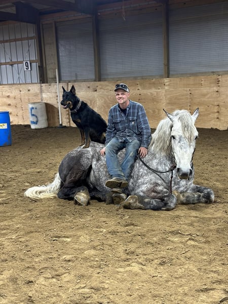 ONLINE VEILING Plaats uw biedingen op www.PlatinumEquineAuction.com Startbod $3500 Veiling eindigt 23 juni 2024 Een nieuw zadel nodig? Bekijk White Rock Saddles op onze website of Facebook! Kijk eens wat we hier hebben... als je een groot, mooi en veilig paard op je boodschappenlijstje hebt staan, dan wil je zeker even naar Jackson kijken. Jackson is een 7-jarige Draft kruising met een stokmaat van 16.3H. Met zijn mooie Dapple Grey kleur zal hij opvallen, of je hem nu op de trails rijdt of mee neemt voor een ritje door de stad. Als je bang bent dat hij te groot is om vanaf de grond op te stappen, weet Jackson hoe hij op commando moet gaan liggen en naar het opstijgblok moet lopen om je op te pakken, zodat je makkelijker op hem kunt stappen. Jackson mag dan groot zijn, maar hij kan nog steeds lopen, draven en galopperen in de bak. We hebben hem door onze hindernisbaan laten lopen en hij gaat over alles heen wat je op de paden tegenkomt. Jackson heeft met meerdere veteranengroepen gewerkt en heeft ook therapiewerk gedaan. Zijn kalme houding en zachte ziel zorgen ervoor dat iedereen verliefd op hem wordt. Jackson is een zeer veelzijdige ruin, en als je niet wilt rijden, kun je hem aan een wagen of kar koppelen voor een mooie rit over de weg of door het bos! Jackson pakt gemakkelijk alle vier de voeten op en gaat staan voor de hoefsmid. Hij is goed voor de dierenarts, het scheren en in bad doen. Jackson is 100% gezond en heeft geen ondeugden. Als Jackson klinkt als het paard voor jou, neem dan contact op met Dayton op 585-734-0169 voor meer informatie. Gevestigd in Warsaw, NY. ONLINE VEILING Plaats uw biedingen op www.PlatinumEquineAuction.com Startbod $3500 Veiling eindigt 23 juni 2024 Een nieuw zadel nodig? Bekijk White Rock Saddles op onze website of Facebook!