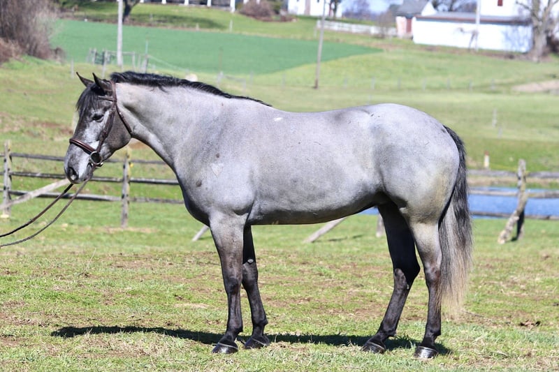 🌟𝑨𝒑𝒓𝒊𝒍 𝐀𝐋𝐋 𝐒𝐓𝐀𝐑 𝐋𝐈𝐍𝐄𝐔𝐏🌟 Happening now thru MONDAY | APRIL 6th - Available EXCLUSIVELY on HorseBid's website! For more details and to register visit: www.Horsebid.com CONSIGNOR CONTACT: CM Farms 717-875-2061 LOCATION: Gap, PA BREED: Perch/QHx REGISTERED: No COLOR: Grey HEIGHT: 15.2 AGE: 4 GENDER: Mare Check out this pretty lady! 😍 ✨Ciara✨ is a 4-year-old, 15.2hh Perch/QHx mare. This girl is a beauty! She’s calm, gentle, safe, and sensible. She’s the perfect in-between build—not too tall, but stocky enough to carry a variety of riders. She’s a little tank! Ciara is broke to ride western, English, and bareback. She’s incredible on the trail and in the arena! She is not your “typical mare”—she has the best attitude, genuinely loves people, and is wise beyond her years.❤️ In the ring, Ciara has a solid walk, trot, and canter in both directions. She will pick up walk-to-canter transitions, move nicely off your leg, and is adjustable at all three gaits. She’s more of a forward-thinking ride and has her own motor, making her light and easy to ride! She’s responsive to your seat and has a nice stop. She’s probably not winning any races, but if you want something that carries itself around the arena without having to kick every step, she’s the perfect one. We could see her being suitable for an amateur or intermediate beginner working with a trainer. She has an incredibly level, safe mind and isn’t one to spook at anything. She has no naughty habits under saddle and is just easy to get along with!🥰 On the trail, Ciara is a steady and reliable mount. She’s a trailblazer in every way—point her in the right direction and she’ll take care of the rest. She’ll take a dip in the river, canter through the fields, squeeze through tight wooded trails, and cross bridges and creeks, all while keeping her happy-go-lucky, drama-free attitude. She’s just as content walking on the buckle as she is keeping up a quicker pace. Ciara is such a good girl she doesn’t even mind if the geldings ride up too close or get in her personal space. She’s been desensitized to just about everything and is truly unflappable. She’s 100% traffic safe and has even been ridden alongside our busy road into town. Semi trucks? No problem. Ciara is the kind you can take out and truly enjoy—she’s stress-free and likes to have a good time. We could even see her packing the husband around for a relaxing hack with how level-headed and easy she is! Ciara is a rose among thorns in the barn. She doesn’t have any typical mare attitude—you wouldn’t know she’s a mare if you didn’t check! She’s always happy and gentle with everyone and everything, including kids and dogs. Her personality makes her the perfect candidate for a family horse! She stands patiently for grooming, bathing, tacking up, and for the farrier and vet. She’ll stand all day for attention and cookies. She has excellent ground manners—easy to catch, lead, load, and handle in the stall. She’s a happy camper in every way, willing to please, and will make someone an incredible lifelong partner!👑 UTD on Shots, Coggins, Dentist, Deworming, and Farrier. ❤️