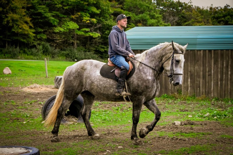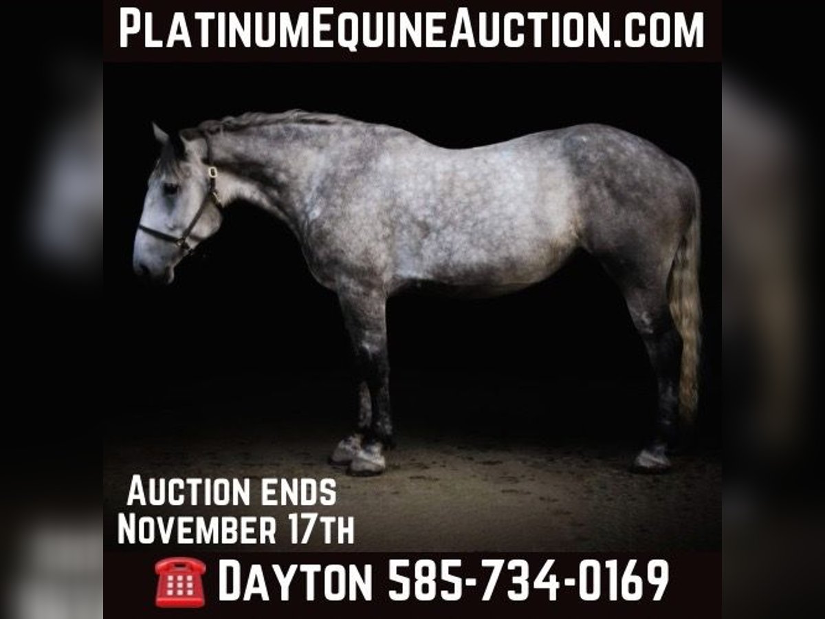 ONLINE AUCTION Place your bids at www.PlatinumEquineAuction.com Starting Bid $3500 Auction ends November 17th, 2024 Need a new saddle? Check out White Rock Saddles on our website or Facebook! “ Tesco” is a 4-year-old 16.3 hand draft cross mare. Her beautifully marked grey coat and sweet demeanor endear her to everyone she encounters. She is a great size to fit many different riders. She is well broke, knows how to use her body, and is gentle in every way. Tesco stands to be mounted, is not phased by tarps, the bullwhip, or any other obstacle we ask her to face. She has been ridden English, Western & bareback. Tesco is quiet and enjoyable to ride; complete beginners have ridden her to advanced riders on the trails and in the arena. She spent all summer at a camp teaching young, timid kids how to ride, and we have also used her multiple times for our special needs lessons. She loves also the trails! Water, rocky terrain, steep hills, and bridges, nothing will bother this horse. Tesco will confidently ride down a busy road, unfazed by the surrounding traffic. She has an extremely smooth walk/trot/canter, knows her leads, and has an excellent whoa. Tesco is always eager to work and please her owner. She has a puppy dog personality and gets along with mares and geldings in the pasture. She stands for the vet, farrier, or just to be loved on and groomed. This girl is absolutely stunning. She has been hauled off the property many times and is the same on the property as she is off. She sells 100% sound with no vices. PPE is welcome at buyers expense. Contact Wolcotts Versatility Horses Dayton 585-734-0169! Visit our facebook page Wolcotts Versatility Horses and Training for more information on our training! Located in Warsaw, NY. ONLINE AUCTION Place your bids at www.PlatinumEquineAuction.com Starting Bid $3500 Auction ends November 17th, 2024 Need a new saddle? Check out White Rock Saddles on our website or Facebook!