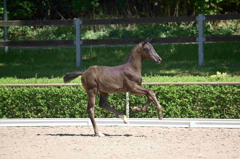 Striking colt by Glamourdale x De Koonig (Donnerhall) x Christ This foal combines modernity and tradition! Dressage blood, confirmed rideability, and a presence that captivates, with a strong type, a lot of expression, and an exceptionally friendly, people-oriented character. Here is the chance for a very good riding horse with all possibilities. An unwavering walk, energetic movement in trot and canter with an uphill tendency from a powerful hind leg. The dam De Schoonheid is a 3-year-old Brilliantring mare with a performance test score of 8.25. Full brother to the dam is a South German premium stallion and has been successful up to M**. Half-sister Mary Lou placed 3rd at the Bundeschampionat and has been sold to the USA. https://horsetelex.de/horses/pedigree/2685343/g For inquiries: Florian Runge 0174/33 21 987