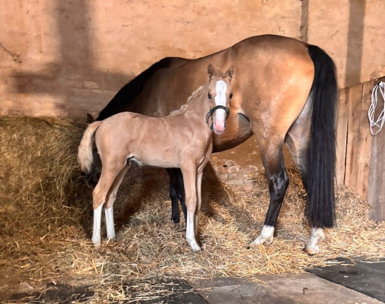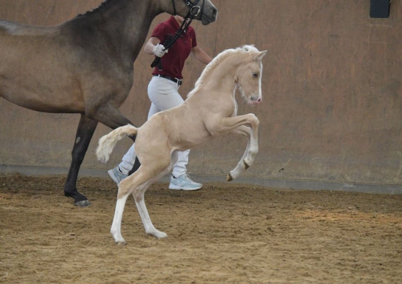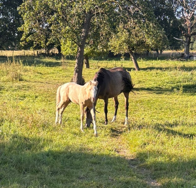 For sale is our award-winning colt in a special color. Major Tom was born on June 2, 2025. He is typically curious for a foal and a true gem to handle. He is familiar with the foal ABC, halters, etc., enjoys extensive cuddle sessions, and explores the world with great curiosity. He is sired by FS Mr. Right out of the State Premium Mare Daylight by Destar. If you are interested or have any further questions, please feel free to contact me. Visit us and see for yourself this wonderful horse!