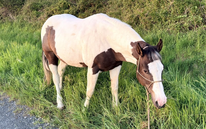 Calm and gentle Pinto / Paint mix gelding available for companionship purposes