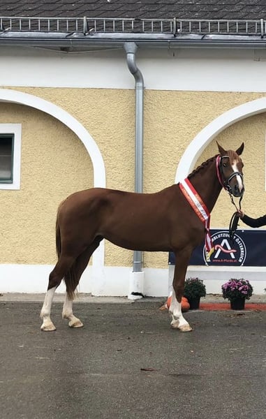 For sale is our 11-year-old chestnut mare, La Dolce Vita TK, a premium-approved Pinto mare with four white legs. The mare has been successful in show jumping up to 1.05 m and in dressage at A-level competitions, impressing with her good, expressive gaits. She has always proven to be reliable and eager in competitions and outings. She has previously suffered two tendon injuries, but these have fully healed. Since then, she has competed successfully without any issues. Ideal for ambitious leisure riders seeking a high-quality leisure horse, she is a wonderful partner; however, she is not suitable for beginners. La Dolce Vita is calm in the field and is accustomed to traffic, including cars, tractors, children, and everyday road traffic. She is attentive and dependable in all situations. She also handles water crossings with ease. She is easy to load and is familiar with both trailer and truck transport. Additionally, she calmly walks in the walk-in horse walker. She is shod on all four legs and experienced in both stable and pasture management. Thanks to her premium status and correct conformation, she is also an interesting prospect for breeding. For serious inquiries, we look forward to hearing from you and are happy to introduce La Dolce Vita TK personally. Further photos and videos available upon request.