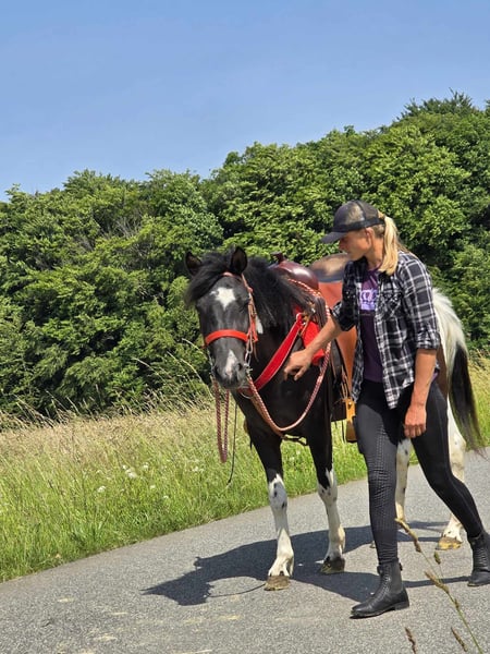 Leisure Mare "LEA" Pinto-Mix Mare for Leisure and Trail Riding* *Age*: 3 years, started under saddle and driven *Height*: approx. 1.36 m *Equipment*: E-pass, microchip, and vet check available *Price*: €4,900 *ridden and driven* A beautiful mare that is ideal for trail riding and leisure activities. She is a versatile leisure horse, well-suited for both English and Western riding. She has a wonderful, balanced temperament and feels comfortable in a herd, but is also well-adjusted in a stable. ### *What sets her apart:* - Used to open stable and herd living, box living is also no problem - Ideal for leisure and trail riders - Very balanced and uncomplicated to handle *Interested?* Feel free to call us at *0171-4001968* (daily from 8 AM to 8 PM). *Please no emails or WhatsApp, only calls!* *Additional Information:* - Equipment and transport can be organized at a low cost. - Our farm shop offers a small selection of used Western saddles. - *Installment payments are not possible.* *Customer Service:* - Every customer receives a contractually guaranteed *exchange right of three months.* - A trial ride with us is possible, so you can get to know your dream horse. For €35, you can ride, have it ridden out for you, go for a walk, or more. If desired, you can also test a second horse for €25. This amount will be deducted from the purchase price of a horse on the same day. *Special Features:* - If picked up immediately with a horse trailer, you will receive *a discount of €100.* - We conduct the sale with a transparent trial ride to ensure it is the right horse for you. *Legal:* - We are the sole and unrestricted owners of the images; the image rights belong to us. *Unauthorized use of the images is prohibited.* - Please note that this is a living horse. Our information is based on the impressions of the caretaker and does not constitute guaranteed characteristics. - Advertisements will be deleted immediately once the horses are sold. *Interested?* Feel free to call us at *0171-4001968* (daily from 8 AM to 8 PM). *Please no emails or WhatsApp, only calls!*
