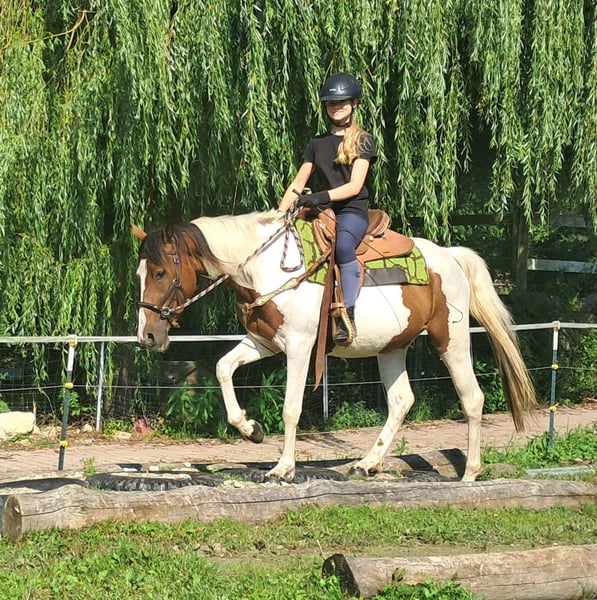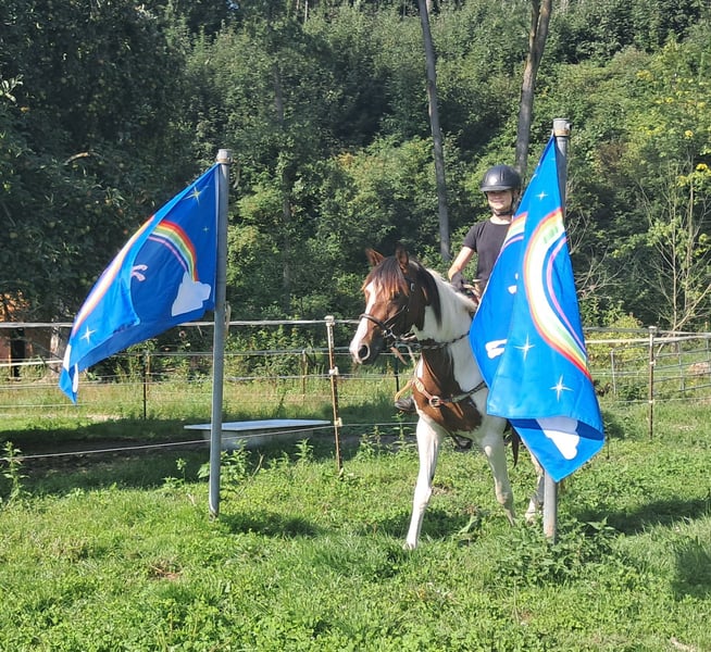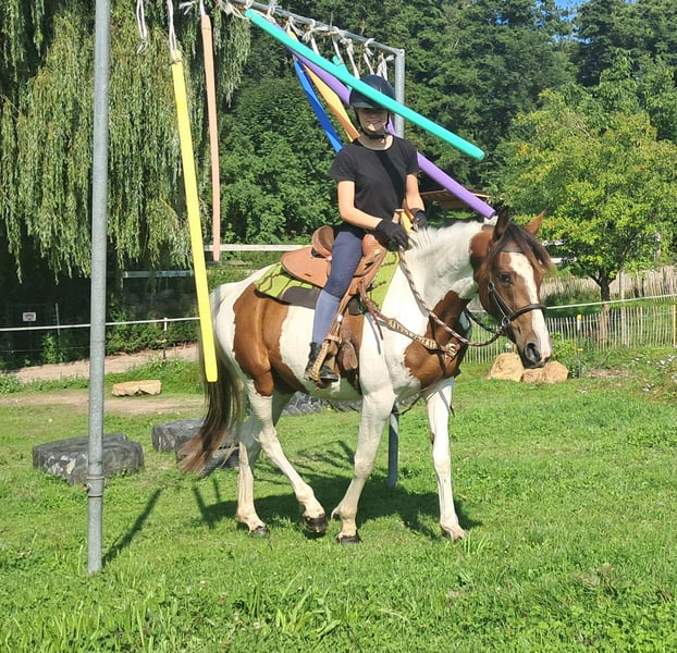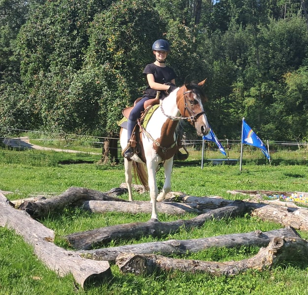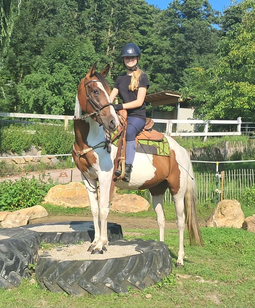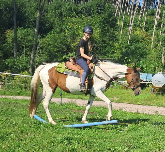 Jule is simply exceptionally beautiful! Wonderful mare with a friendly disposition, very cool and relaxed, born with us, raised in a species-appropriate manner, robust, well-socialized, trained with calmness and patience, easy to ride, good to sit on, always wanting to please, absolutely unspoiled, trail-safe. Loading, farrier, etc. are all no problem, come by and fall in love, 152 cm, 3 years old. For trail riding, outdoor riding, leisure riding, and therapy riding. Both English and Western riding are possible. Accustomed to open stabling and herd living, a box is also no problem. Equine passport available. All our horses are familiar with groundwork, different terrains, cars, agricultural machines, as well as cows, donkeys, sheep, pigs, dogs, cats, and chickens. For information and appointment scheduling, call 08536-2890292 (voicemail available) or 0157-78378455 (no mobile network at the farm). Please no private messages, emails, or WhatsApp inquiries!! Sunday is a rest day. Accessories and transport can be arranged at a low cost. Every customer is granted a legally stipulated exchange right of 6 weeks. Prices are fixed prices. No inquiries for installment payments are desired. Those who come with a trailer and take her home will receive a €100 discount. A deposit of €1000 in cash is required upon purchase. Anyone who wants to take the horse home immediately must, of course, pay in full. We will take customers on a ride with two horses of your choice so that you can get to know your dream horse and check if it is the right horse for you. Each appointment costs €35, regardless of whether riding, leading, preparing, or walking... every additional rider (friend, partner, sister, trainer...) pays the same if they ride along; just watching also costs us time and thus €20. This amount will be refunded on the same day upon the purchase of a horse. Due to multiple occurrences, we kindly ask for truthful information regarding the rider's weight. If false information is provided, we reserve the right to decline a trial ride on-site. For the sake of our horses, we do not want to subject our well-built horses to more than 120 kg. Since this is a living animal, these are merely impressions of the caretaker and not guaranteed characteristics of the horse. More horses/ponies in my other ads or upon request.