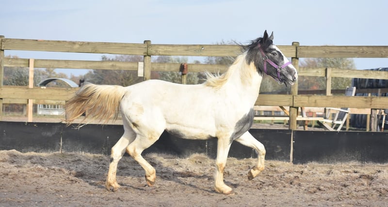 Lucky is een in Nederland geboren Tinker/Pintomerrie . Ze is blauwbont getekend en heeft een mooie rijponybouw. Ze is nu ongeveer 143 m hoog en groeit nog. AES ingeschreven met blauw papier . Moeder heet Tinka. Lucky is hier ontzettend nuchter, zowel in de omgang als op stal, in het verkeer en in de trailer. Je moet bij alle paarden, maar zowieso bij een jong paardje als deze, wel consequent in het grondwerk zijn en weten wat je doet. Lucky spiegelt je precies. Ze wordt op 5 mei 2026 3 jaar oud en is totaal vrij van gebreken. Haar vorig baasje wil graag contact met een nieuwe eigenaar en ze schrijft : “Lucky ( Twilight) zo als ik haar noemde hebben wij gekocht omdat na een ernstig ongeluk en een gevecht van 10 jaar zijn mijn laatste puzzel stukje was om mijn mijn leven terug te krijgen Ik zag in haar een gouden pony echter door mijn eigen onzekerheid en angst kon ik haar niet geven wat zij nodig had Dus een ruiter die zelfverzekerd is en haar goed met liefde kan begeleiden zal met geduld en liefde echt een super paard hebben. Want dat is echt wat ze verdient! Ik kon met haar in de bak lopen en met hand gebaren grondwerk doen en voor een snoepje deed ze alles Maar nogmaals echter door mijn onzekerheid kon ik haar niet geven wat ze nodig had. “ Kan soms wat merrieachtig/ gevoelig / uitgesproken zijn, maar met duidelijke grenzen werkt ze fijn mee. Ze is zeer recent geheel goed gekeurd zonder aanmerkingen , door een erkende paardenarts , inclusief bloedafname . Met de keuring hebben we alle 4 de benen kunnen buigen. Voor reserveerders of ter plaatse zijn films van de keuring te zien . Prijs momenteel € 3450,-