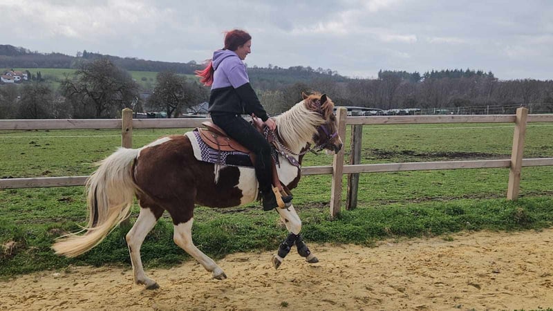 Scheckpony-Stute – brav im Umgang & angenehm zu reiten QUENIE Alter: ca. 6 Jahre Stockmaß: ca. 1,40 m Preis: 5400,- AKU vorhanden ✨ Beschreibung: Eine nette Scheckpony-Stute mit freundlichem Wesen. Im täglichen Umgang zeigt sie sich brav, unkompliziert und menschenbezogen. Unter dem Sattel ist sie angenehm zu reiten, aufmerksam und arbeitet gerne mit ihrem Reiter zusammen. Sie kennt auch die Reithalle und zeigt sich dort ebenfalls kooperativ. Ein sympathisches Pony, das sowohl im Freizeitbereich als auch für Reiter geeignet ist, die ein freundliches Pony suchen. Geeignet für: Freizeitreiter, Jugendliche oder kleinere Erwachsene, die ein unkompliziertes und nettes Pony suchen. Unsere Pferde werden regelmäßig: – entwurmt – vom Schmied betreut – osteopathisch kontrolliert Hofladen: Westernsättel, Trensen & weiteres Zubehör Transport und Equipment können auf Wunsch organisiert werden. Unser Service: ✅ 3 Monate Umtauschrecht ✅ Proberitt: 35 €, jedes weitere Pferd 25 € (bei Kauf am selben Tag angerechnet) Preisnachlass bei sofortiger Mitnahme oder Transport am gleichen Tag: • Preiskategorie 1: 100 € Rabatt • Preiskategorie 2 (ab 5.000 €): 250 € Rabatt ✅ Persönliche & ehrliche Beratung Anfragen bitte ausschließlich telefonisch: 0171 – 4001968 Erreichbar täglich von 8–20 Uhr ⚠️ Keine E-Mail oder WhatsApp ⚠️ Alle Angaben ohne Gewähr