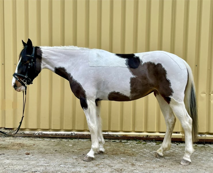 Zum Verkauf steht eine 6-jährige Pinto Stute mit ca. 1,50 m Stockmaß. Sie fällt nicht nur durch ihre schöne Zeichnung auf, sondern überzeugt vor allem durch ihren ehrlichen und unkomplizierten Charakter. Unter dem Reiter zeigt sie sich brav und angenehm zu reiten. Sie geht alleine sowie in der Gruppe sicher ins Gelände und bleibt dabei stets kopfklar. Auch auf dem Platz/in der Halle arbeitet sie ordentlich mit und ist somit ein tolles vielseitiges Freizeitpferd. Vom Vorbesitzer wurde sie zudem gefahren. Weitere Infos: • brav im Umgang& unter dem Reiter • gesund • herdenverträglich • schmiede- und verladefromm • regelmäßig geimpft und entwurmt • Kinder- und Therapiegeeignet Gesucht wird ein passendes Zuhause bei Menschen, die ein ehrliches und unkompliziertes Pferd suchen.