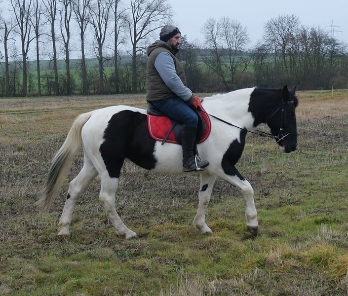 Einfache, unkomplizierte Stute,brav im Umgang und problemlos zu reiten. Sicher im Straßenverkehr und Gelände. Lora ist auch einspännig gefahren. 6 Jahre, 152cm Bei Interesse bitte anrufen, keine Mail! Für eventuell auftretende Fehler in der Beschreibung gilt keine Gewähr! Tel.: 0173-3843407 Da es sich um ein lebendes Tier handelt, sind dies subjektive Eindrücke des Anbieters und keine zugesicherten Eigenschaften des Tieres! Ständig schöne Fahr-u.Freizeitpferdesowie neue Kutschen verschiedener Modelle preiswert im Angebot. Anschrift Stall: 99628 Buttstädt, Oberwendenstraße 39