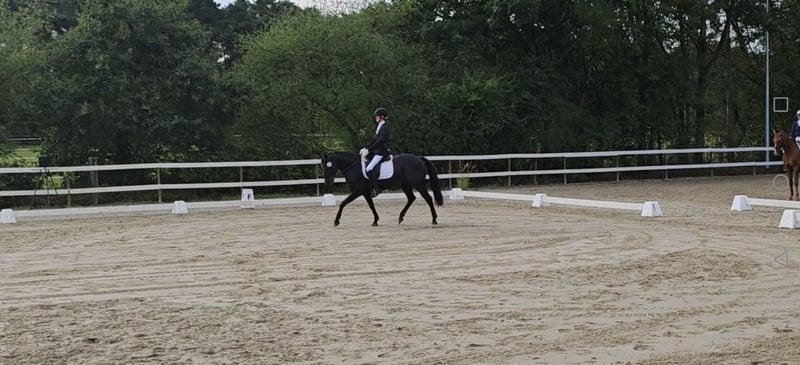 Du bist auf der Suche nach einem Umstiegspferd? Dann bist du bei uns genau richtig! Samara ist eine achtjährige Rapp-Stute (mit Stichelfell). Sie ist brav und menschenbezogen. Ihr Stockmaß beträgt ca. 150m- 1, 55m. Perfekt für Teenager und kleine Erwachsene geeignet.Seit dem Mai 2025 ist sie unter dem Sattel. Hierbei zeigt sie sich von ihrer besten Seite. Sie war bereits auf zwei Turnieren und absolvierte dort eine A-Dressur dort konnte sie jeweils mit einer 6er Note von sich überzeugen. Souverän meisterte Sie dieses. Hier lief sie sowohl einmal als erstes Pferd der Abteilung als auch ein zweiter Position. Bereits auf dem zweiten Turnier war ein ablongieren nicht mehr erforderlich. Trotz sie erst seit kurzer Zeit unter dem Sattel läuft beherrscht sie Lektion wie das Schenkelweichen, das Viereck vergrößern, Vorhangswendung, Galoppsprünge verlängern, Trab Tritte verlängern, ganze Paraden und vieles mehr. Kennt Kühe, Trecker, Kinder. Steht auf einem Bauernhof. Kennt den täglichen Weidegang. Nachts Boxenhaltung. Sowohl das Reiten auf dem Reitplatz als auch der Reithalle bereitet keine Schwierigkeiten. Als Turnierpferd eingetragen. Im August geimpft. Ende September einen Wolfszahn gezogen, sowie Haken entfernt. Kennt das Hängerfahren. Hierbei steht sie ruhig und unauffällig Vom Pferderücken lassen sich beispielsweise die Schiebetüren der Reithalle, sowie die Bandentür der Reitbahn öffnen Sambero x Salvador