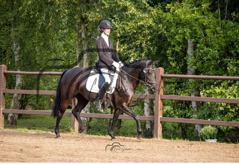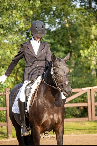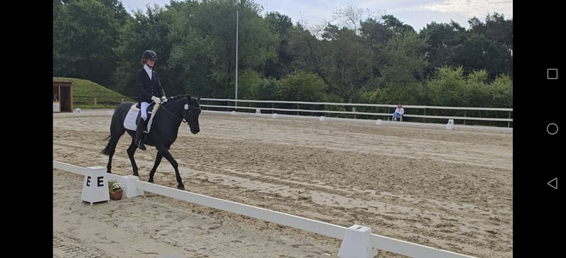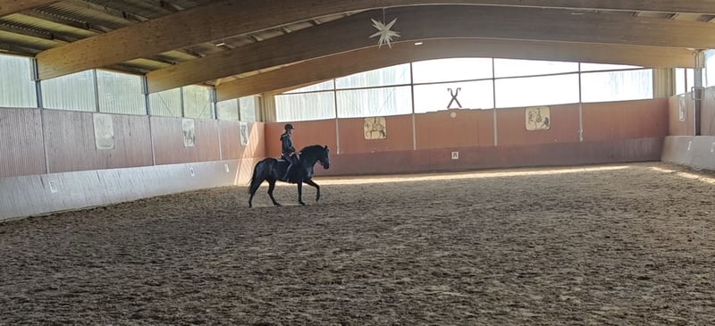 Du bist auf der Suche nach einem Umstiegspferd? Dann bist du bei uns genau richtig! Samara ist eine achtjährige Rapp-Stute (mit Stichelfell). Sie ist brav und menschenbezogen. Ihr Stockmaß beträgt ca. 150m- 1, 55m. Perfekt für Teenager und kleine Erwachsene geeignet.Seit dem Mai 2025 ist sie unter dem Sattel. Hierbei zeigt sie sich von ihrer besten Seite. Sie war bereits auf zwei Turnieren und absolvierte dort eine A-Dressur dort konnte sie jeweils mit einer 6er Note von sich überzeugen. Souverän meisterte Sie dieses. Hier lief sie sowohl einmal als erstes Pferd der Abteilung als auch ein zweiter Position. Bereits auf dem zweiten Turnier war ein ablongieren nicht mehr erforderlich. Trotz sie erst seit kurzer Zeit unter dem Sattel läuft beherrscht sie Lektion wie das Schenkelweichen, das Viereck vergrößern, Vorhangswendung, Galoppsprünge verlängern, Trab Tritte verlängern, ganze Paraden und vieles mehr. Kennt Kühe, Trecker, Kinder. Steht auf einem Bauernhof. Kennt den täglichen Weidegang. Nachts Boxenhaltung. Sowohl das Reiten auf dem Reitplatz als auch der Reithalle bereitet keine Schwierigkeiten. Als Turnierpferd eingetragen. Im August geimpft. Ende September einen Wolfszahn gezogen, sowie Haken entfernt. Kennt das Hängerfahren. Hierbei steht sie ruhig und unauffällig Vom Pferderücken lassen sich beispielsweise die Schiebetüren der Reithalle, sowie die Bandentür der Reitbahn öffnen Sambero x Salvador