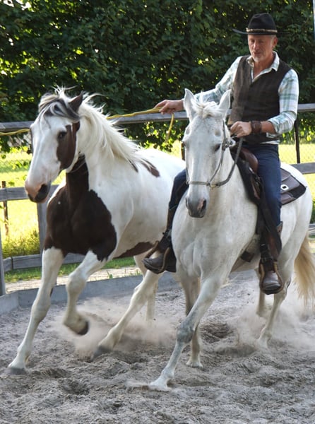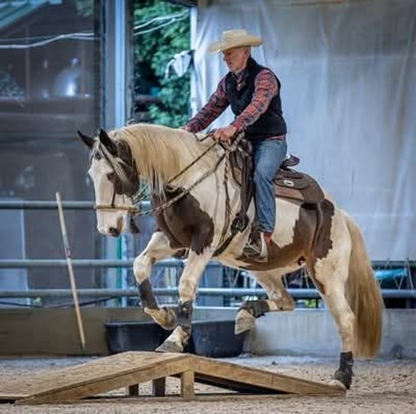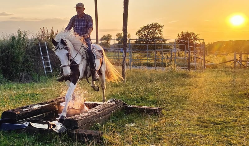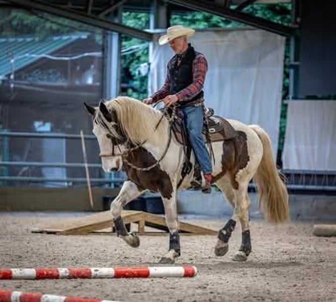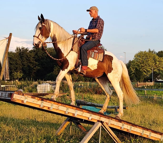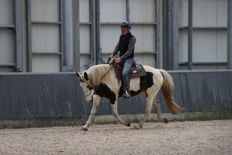 Zu verkaufen: Schöne gepunktete Pinto-Stute, geboren 2016 Diese wunderschöne Pinto-Stute vereint ihr einzigartiges geflecktes Fell mit einem freundlichen und ruhigen Wesen. Mit einer Stockmaß von 1,67 m bietet sie die ideale Größe für Freizeitreiten und eine breite Palette an Reitern. Sie ist gut geritten, bitless, im Bodenarbeitstraining und besitzt eine zuverlässige, ruhige Natur, wodurch sie sich hervorragend für Freizeitritte, Kutschfahrten und als Begleittier eignet. An Trail- und Extreme Cowboy-Wettbewerben hat sie bereits regelmäßig teilgenommen, und bei Vorführungen zeigt sie ihr volles Potenzial. Sie ist gesund, gut gepflegt und leicht im Umgang. Ihr auffälliges Erscheinungsbild und ihr ruhiges Temperament machen sie zu einer attraktiven Wahl für Reiter, die nach einer zuverlässigen und charmanten Begleiterin für die Freizeit suchen. Ein echter Allrounder. Wird verkauft, da ihr derzeit zu wenig Zeit bleibt. Haben Sie Interesse an dieser vielseitigen Pinto-Stute? Zögern Sie nicht, uns für weitere Informationen oder ein Kennenlernen zu kontaktieren.