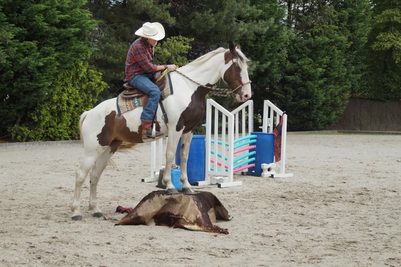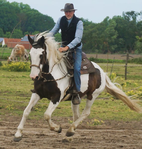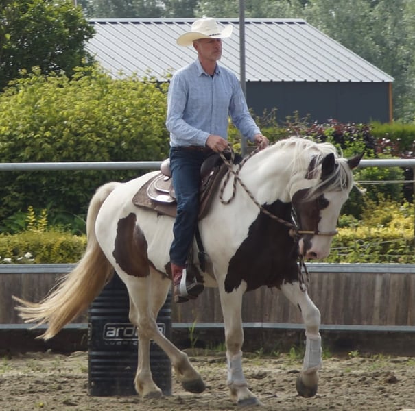 Te koop: Mooie gevlekt-pinto merrie, geboren in 2016 Deze prachtige pintos merrie combineert haar unieke gevlekte vacht met een vriendelijke en rustige uitstraling. Met een stokmaat van 167 cm biedt ze een ideaal formaat voor recreatief rijden en een breed scala aan ruiters. Ze is goed doorgereden, bitloos, grondwerk en heeft een betrouwbare, rustige aard, waardoor ze zich uitstekend leent voor recreatieve ritten, mennen, als gezelschapspaard. Trail en extreme cowboy wedstrijden heeft ze reeds op regelmatige basis deelgenomen en demo's toont ze haar op haar best. Ze is gezond, goed verzorgd en gemakkelijk in de omgang. Haar opvallende uiterlijk en haar rustige karakter maken haar tot een aantrekkelijke keuze voor ruiters die op zoek zijn naar een betrouwbare en charmante metgezel in de recreatie. Een top all rounder. Wordt verkocht door te weinig tijd nog vr haar. Bent u geïnteresseerd in deze veelzijdige pintos merrie? Neem gerust contact op voor meer informatie of een kennismaking.