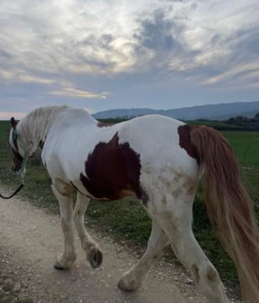 Se vende caballo pío de 19 años, entero, con 1,63 m a la cruz. Es un caballo ideal para jinetes con experiencia media. Está acostumbrado a salir al campo y se mueve con comodidad al paso, trote y galope. Perfecto para paseos relajados o excursiones por la naturaleza. Características: • Edad: 18 años • Altura: 1,63 m a la cruz • Sexo: Entero • Experiencia recomendada: media • Uso principal: paseos por el campo Extras: • Buen estado de salud y cuidado habitual • Entrenado en exteriores y transporte Se incluye equipo de monta, de limpieza, ramal, cabezada.... Para más información o visitas, contactar por mensaje.