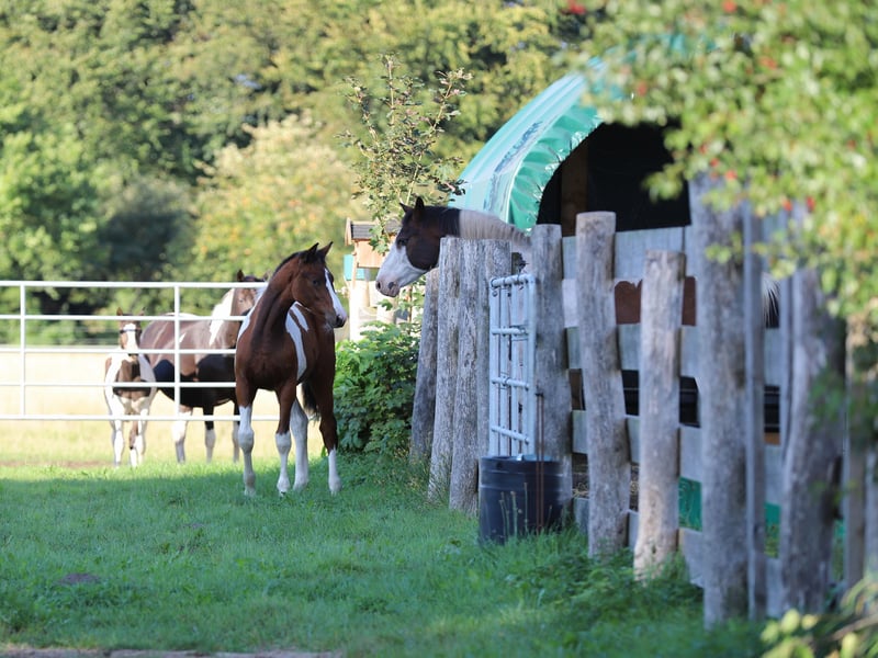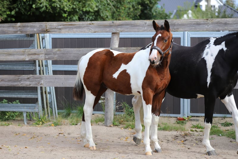 Söl'rings Mokkaccino *3/25 Brown Pinto Mokka is a well-developed, typy brown pinto who has been awarded the foal premium by the association. He is raised in a small herd; regularly dewormed and introduced to the farrier. Genetic defects such as CA / SCID and WFFS have been found to be free. Mokkaccino will be weaned in the 40th week and will be ready for a new herd. A viewing is of course possible. Feel free to schedule an appointment.