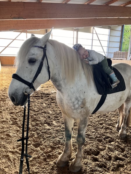 Hello, I’m Pascha, 13 years old, a Polish Coldblood. I’m a bit more athletic in build compared to my Coldblood peers. When I’m just standing in the pasture with my friends, I get bored quickly because I’m very clever and love to learn new things. I do groundwork based on horsemanship or ride dressage in the indoor arena. My favorite thing is to stand on the podium, as I can then see everything around me. Sometimes we go for walks, which I still find quite exciting. I’m good at managing on my own as herd leader, so I sometimes find it a bit difficult to relinquish control. However, with confident, self-assured people, I handle this much better. In training, I think along and always want to do my best. I’m generally up for any fun and will do anything for a treat. But I also enjoy a good grooming session, which can win me over. ;) Currently, I’m exercised 2-3 times a week, but I’d be happy to get more movement. Since my owner has moved and the training conditions in the new environment aren’t ideal for me, we’re looking for a new caring person who enjoys encouraging me in the countryside and practicing with me. Even though I sometimes get startled, I really enjoy being out in the fresh air. I also like to go on outings in the trailer, and I behave well at the farrier. I’m currently barefoot and prefer to stay that way. The word “sick” has never really applied to me, and apart from a bit of mud fever during the winter months, I have no issues. I can be ridden normally even with that. I’ve never experienced lameness. If you want to know more, just send us a message, and we’ll gladly provide you with more info, photos, and videos. Best regards, Pascha and Hanna