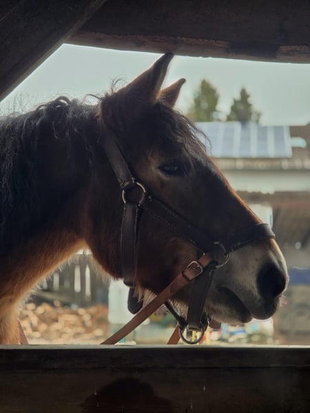 Zum Verkauf steht ein 12-jähriges Polnisches Kaltblut, mit kompletten Zubehör ( Sattel, Geschirr , Kutsche , Zaum , Lederhalfter) ideal für blutige Anfänger, Angstreiter und Kinder. Er geht alleine sowie in der Gruppe sicher ins Gelände und ist vom Charakter her ein ruhiger Energiesparer. Er ist geritten, gefahren und in der Waldarbeit eingesetzt. Geritten wird er gebisslos oder mit Gebiss, ebenso mal für eine gemütliche Runde ohne Sattel oder nur mit Halsring. Hängerfahren (steigt ohne Zögern ein) und Schmied sind absolut problemlos, er kennt alles, was ein Pferd kennen muss. In der Herde sehr verträglich, gesund ohne Krankheiten . Auch für Therapiearbeit bestens geeignet. Selbst bei "gruseligen" Situationen bleibt er ruhig, schaut kurz und geht mutig weiter, kein zur Seite springen oder Aufregen. Ein ehrliches Traumpferd ohne Macken oder Fehler.