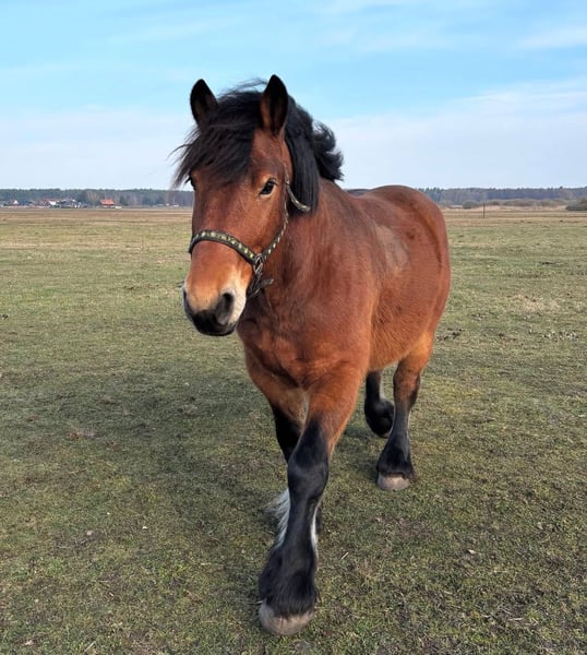 Herzensplatz für Dingo gesucht Schweren Herzens suchen wir für unseren 7-jährigen Kaltblut-Wallach Dingo ein neues Zuhause. Diese Entscheidung fällt uns alles andere als leicht und erfolgt ausschließlich aus privaten Gründen – daher gilt ganz klar: Platz vor Preis. Dingo ist ein absolut unerschrockener und neugieriger Freizeitpartner, der brav alleine oder in der Gruppe ins Gelände geht und neue Situationen mutig erkundet. Er lernt sehr schnell und arbeitet motiviert mit, wenn man ihn fair und konsequent fördert. Er bringt allerdings auch seinen eigenen Kopf mit Durch seinen dominanten und manchmal sturen Charakter suchen wir einen erfahrenen Menschen, der Freude an einem charakterstarken Partner hat. Für Anfänger ist er daher nicht geeignet. Was Dingo mitbringt: ✨ 7 Jahre, ca. 1,53 m ✨ Freizeit geritten, geländesicher alleine oder in der Gruppe ✨ Ranghoch in der Herde, Offenstall gewohnt ✨ Verladefromm & Barhufer ✨ Fremden gegenüber anfangs skeptisch – Schmied inzwischen problemlos ✨ Entwurmt (10/2025) & Zahnarzt (09/2025) ✨ Videos vorhanden (wurde sogar von einem Kind geritten) Wir geben Dingo ab, da sich unsere private Situation kurzfristig verändert und zusätzlich Futterkonkurrenz mit unserer Stute besteht – auf der Koppel sind beide jedoch sehr lieb miteinander. Wir wünschen uns für ihn einen Platz, an dem er ankommen darf und geschätzt wird. Er steht in Joachimsthal. Bei ernsthaftem Interesse freuen wir uns über eine Nachricht.