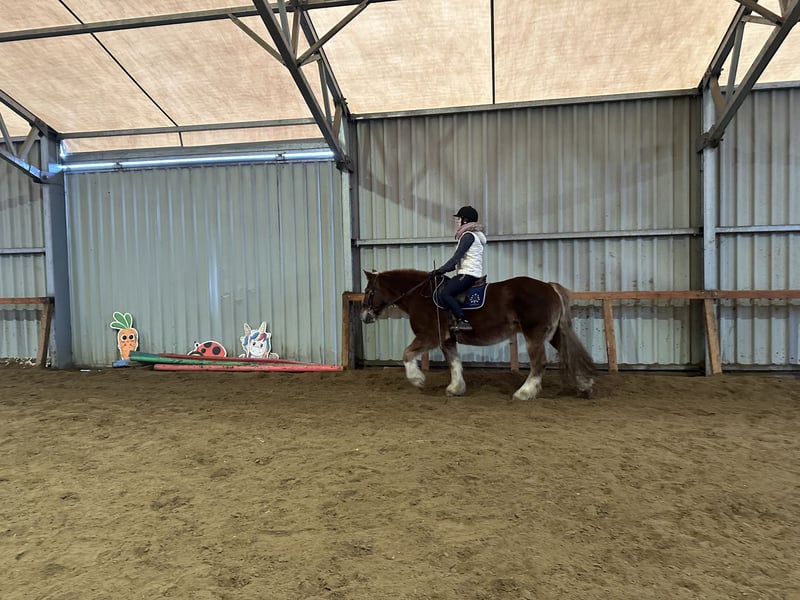 Witam. Posiadam na sprzedaż bardzo ładną i poprawną klacz zimnokrwistą, która ma na imię Rysia. W obejściu jest bardzo grzeczna, nie gryzie, nie kopie, obsługiwana i prowadzana przez dzieci. Uwielbia zabiegi pielęgnacyjne, a w szczególności czesanie długiej grzywy. Codziennie wychodzi na padok wraz ze stadem. Nie jest uległa, ale też nie szuka zaczepki. Bardzo ładnie daje na siebie wsiadać. Chodzi pod siodłem ale nie nadaje się dla wszystkich.Jak to klacz, potrafi pokazać rożki. Zdarzy jej się bryknąć, kwiknąć i zbuntować. W terenie za to jest bomboodporna. Nie płoszy się i nie boi. Może iść jako czołowa jak i zamykać zastęp.
