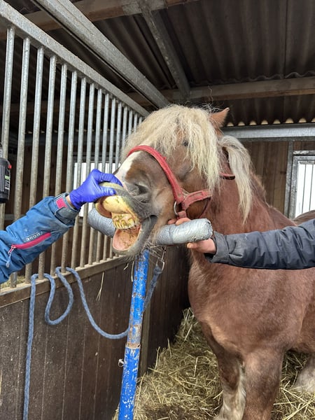 Jest to koń doinwestowany. Ma wszystkie szczepienia, jest odrobaczana. Zna kowala (robiona w klatce przez swoje gabaryty). Miała robione zęby. Nie kaszle, nie choruje, nie kolkuje. Weterynarza widzi tylko na rutynowych kontrolach.