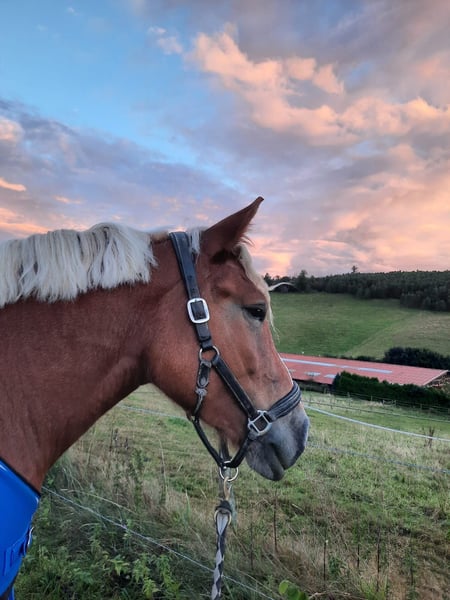 Unser Vereinspferd Sunny sucht ein neues und liebevolles Zuhause. Sie steht noch am Anfang Ihrer Ausbildung und kann deshalb nur bedingt bei jungen und unerfahrenen Reitschülern eingesetzt werden. Sunny eignet sich bestens als vielseitig einsetzbares Freizeitpferd. Auch in der Dressur zeigt sie sich sehr motiviert. Sie ist absolut brav und ehrlich, erfordert aber aufgrund Ihrer Statur und Unerfahrenheit einen klaren Umgang. Charakterlich sehr ausgeglichen und dem Menschen zugewandt. Sie kennt 24/7 Herdenhaltung in einer gemischten Herde und Boxenhaltung. Das Pferd ist schmiede- und verladefromm, wurde regelmäßig entwurmt und geimpft. Auch die Zähne wurden regelmäßig kontrolliert. Alter: 4,5 Jahre Stockmaß: 154 cm Rasse: Kaltblut-Mix Bei ernsthaftem Interesse gerne unter 01722791835 melden – wir freuen uns über seriöse Anfragen.
