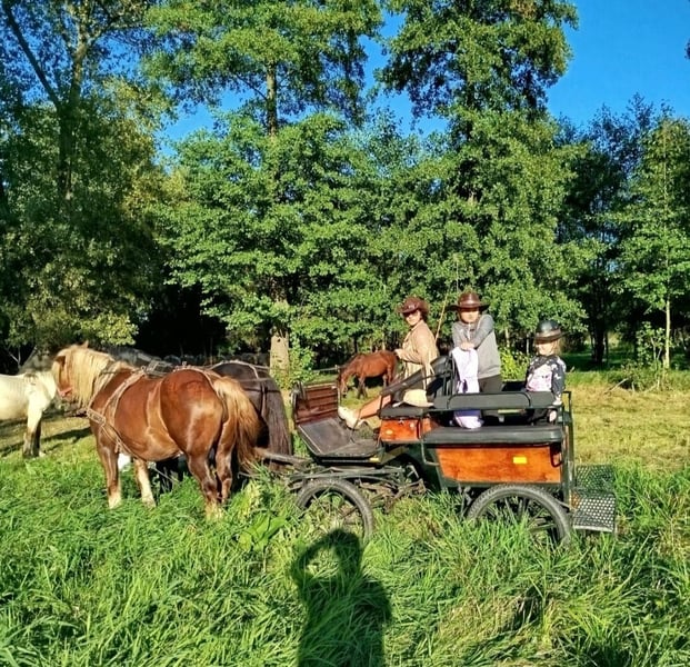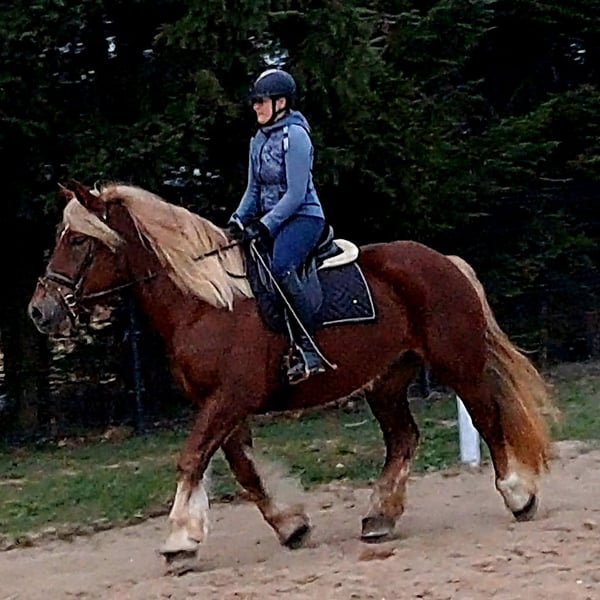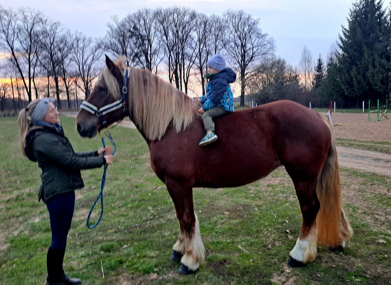 Wunderschöne, großramige Stute Didi - Kaltblut ca. 1,66 m. Freizeitmässig geritten und gefahren. Sie war benutzt in Kutsche als Lehrmeisterin für junge Pferde. Perfekt als Familienpferd/ Geländepferd/ als Therapiepferd Sie geht unter Sattel in alle 3 GGA, geht alleine ins Gelände. Kennt Longe, mag gerne Spazieren gehen. Ist Verlass und absolut unerschrocken. Didi mag gerne Kindern- putzen, führen ist kein Problem. Sie ist absolut ein Traumpferdchen für Kindern und Erwachsene. In Umgang ist unkompliziert. Sie ist fit, gesund, ohne Mankos. Offenstall geeignet, Herdenverträglich. Videos vorhanden Transport möglich.