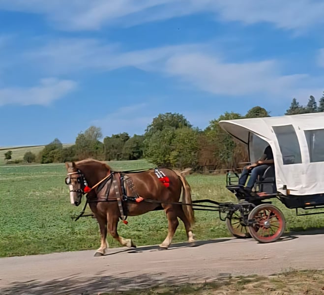 Wunderschöne Kaltblut Stute abzugeben. Sie heisst Resi - 7 Jahre - 1.68m. Sie ist eine sehr liebe, anhängliche Stute Resi wird im Gelände geritten Sowohl in der Gruppe als auch allein. Sie hat schöne weiche Gänge, sie ist angenehm zu sitzen Anfänger, Wiedereinsteiger oder Gewichtsträger sind kein Problem für sie. Resi ist auch ein und zweispännig gefahren. Sie ist Zug und Strassensicher. Traktoren, Motoräder, bellende Hunde, Kinder.. nimmt sie gelassen. Vertraut mit Kutsch und Planwagenfahrten. Bei Interesse einfach anrufen. Probe reiten und fahren ist möglich
