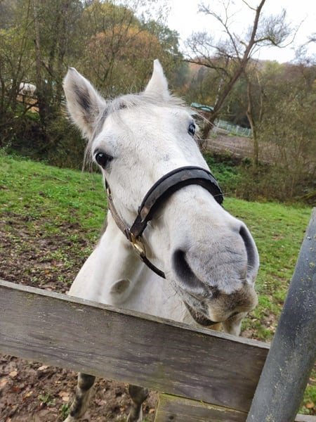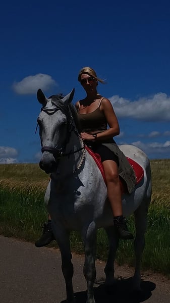 Health: Casanova is vaccinated against tetanus, his teeth have been floated, he is dewormed, free of eczema, and shows no signs of melanoma typical of grey horses. He is people-oriented, confident, willing to work, and needs daily mental and physical stimulation. He is familiar with farm and village life, including dogs, cats, wildlife, tractors, agricultural machinery, and vehicles. He is open-minded and curious about new things. He is shod, currently barefoot, but has also been fully shod in the past. In the indoor arena, he tends to be somewhat sluggish, but he is lively and energetic in the field. He easily separates from the herd alone and does not "climb" or stick to others. Initially, I only rode him without a saddle. During later rides with a saddle, it became apparent that he may have a saddle-related issue. He tends to nibble on the lead rope and snap at it when grooming and tacking up. To keep him occupied and distracted, I now hang a toy on the lead rope. Once the saddle is on, he has no issues, and tightening the girth is not a problem. Casanova is accustomed to stable life but has also spent time in a 24/7 pasture with three mares. He tolerates hay and fresh grass without any issues. He is definitely not suitable for children or beginners, as he is a confident horse that can be somewhat skeptical of new people at first. He may test boundaries and pin his ears when unsure. However, if he realizes he cannot get his way, he will stop. Therefore, he requires an experienced handler who can give him the necessary security through loving firmness, patience, and trust. He needs to be worked with several times a week, ideally daily. Due to my limited time, I initially had him in full training for several months to meet his needs, but this is not a sustainable long-term solution. Currently, he spends a lot of time in his box due to weather conditions and needs to burn off energy when outside. Consequently, trial riding is only possible to a limited extent at the moment. If you are willing to take on this challenge, get to know Casanova, and give him a new home, please feel free to contact me.