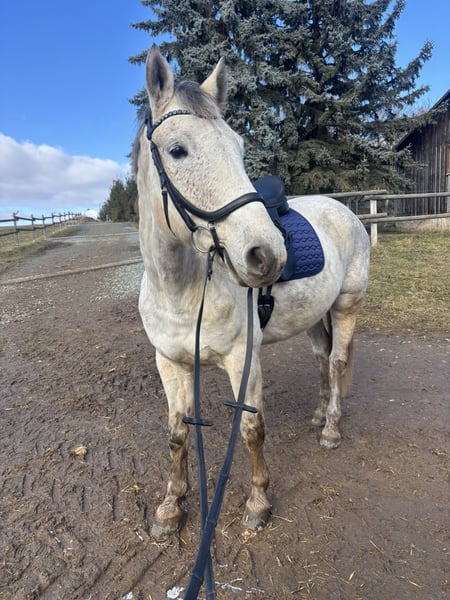 Zum Verkauf steht ein 10-jähriger kompakt gebauter polnischer Warmblut Wallach mit ca. 158-1,60 Stockmaß. Er ist turniererfahren im Springen bis Klasse E und zeigt sich dabei ruhig und zuverlässig. Jedoch kein Selbstläufer. Im täglichen Umgang ist er absolut unkompliziert: kennt Hängerfahren, ist brav beim Tierarzt und Schmied und insgesamt sehr brav im Handling. Unter dem Reiter ist er ehrlich und gutmütig, eher der ruhige Typ und daher gut geeignet für Freizeit- oder ambitionierte Einsteigerreiter. Im Gelände ist er etwas zügiger unterwegs als auf Platz und in der Halle. Er ist gepflegt und regelmäßig gearbeitet. Jedoch ist er erst seit knapp über einem Jahr „gezielter“ gearbeitet unter dem Sattel. Hier ist noch einiges ausbaufähig. Der Verkauf erfolgt aus privaten Gründen in ein gutes Zuhause. Aktuell Turnierpferde eingetragen und fortgeschrieben. Videos auf Anfrage. Es darf sich bei ernsthafter Interesse gern jederzeit gemeldet werden. Für ein Probereiten werden 20€ berechnet, welche beim Kauf verrechnet werden (Vermeidung vom Reittourismus)