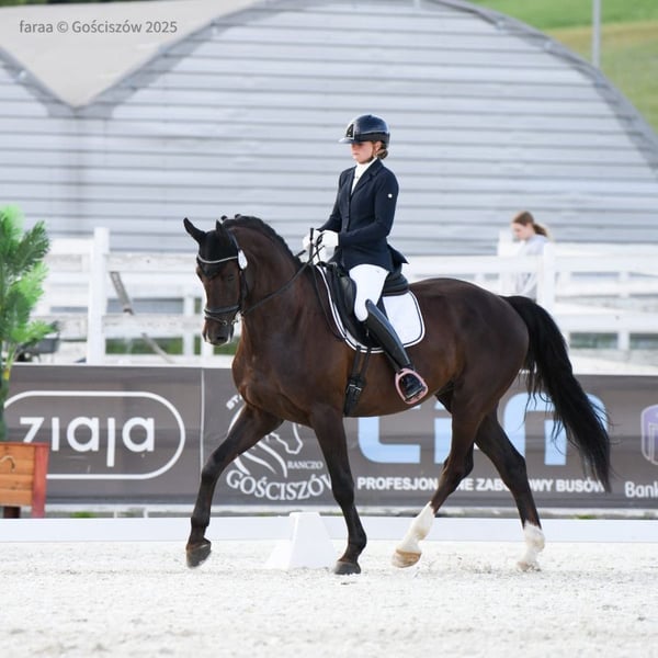 Płeć: Wałach Data urodzenia: 2018 (7 lat) Maść: Ciemno-kasztanowata Rasa: SP szlachetna półkrew Wzrost: 174 cm Ojciec: Kaiser Karl Matka: Juree Ter Dieschoot Przeznaczenie: Ujeżdżenie Etap edukacji: Klasa C Charakter i temperament: Dla doświadczonego Chodzi w tereny Przyzwyczajony do psów Niepłochliwy Starty w zawodach: Regionalne Krajowe Inne cechy: Grzeczny w transporcie Przyzwyczajony do kowala Kuty Prawidłowe kopyta Umie pracować z ziemi Opis ogłoszenia: Na sprzedaż piękny ujeżdżeniowy 7-letni wałach (Jack Sparow P), niesamowicie urokliwy i łapiący za oko. Koń dla każdego, spokojny, przyzwyczajony do transportu, kowala (kuty), wody, grzeczny w terenie. Koń bez narowów, bardzo ambitny. Aktualnie wychodzi na pastwisko z resztą koni. Startujący i wygrywający w klasach (L,P,N). Koń w ciągłym treningu od Marca tego roku, aktualnie zaczął robić lotne zmiany. Z wielką łatwością do piafu. Na ostatnich zawodach w klasie N wyniki 64-66% dające podium każdego dnia. Od 4 roku życia w jednych rękach. Sprzedaję z wielkim bólem serca, ze względu na wyjazd na studia. Tylko w dobre i kochające ręce. Więcej informacji oraz filmy w wiadomości prywatnej. Cena podlega negocjacji
