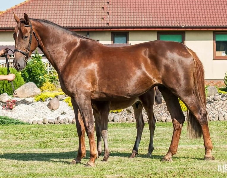 Ciemno kasztanowata klacz hodowlana po ogierze Messenger z matki po Qumball . Duża ramowa 172 cm wzrostu. Urodzona 2014. Sprawdzona w hodowli . Dała potomstwo po ogierach takich jak : Zinedine , Chaccoss ' son II , Colestus , Tauron Idea . Bonitacja 80 pkt. Zapraszam do kontaktu telefonicznego . Cena do negocjacji.