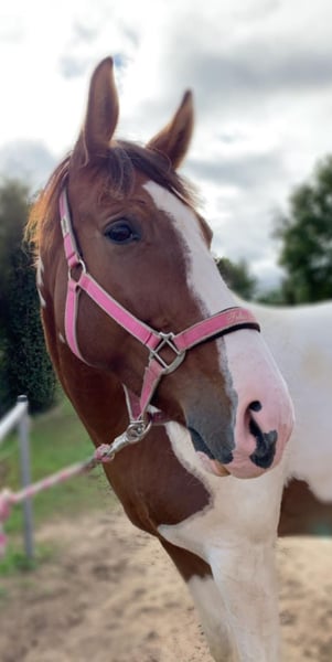 Verkaufsanzeige – Polnisches Warmblut (Stute), Jahrgang 2011 Zum Verkauf steht meine liebe Stute, ein polnisches Warmblut aus dem Jahr 2011 mit einem Stockmaß von ca. 1,59 m. Sie ist eine hübsche Braunscheckestute und besticht vor allem durch ihren unglaublich lieben und ausgeglichenen Charakter. Sie ist ein echtes Familienpferd: sehr menschenbezogen, kinderfreundlich und immer bemüht, alles richtig zu machen. Sie kennt den Hänger, ist brav im Gelände und arbeitet auch gerne auf dem Platz. Dressurarbeit ist ihr vertraut, außerdem springt sie sicher auf E-Niveau. Turniererfahrung hat sie nicht – sie wurde hauptsächlich als Freizeitpferd geritten. Durch ihr ruhiges Wesen eignet sie sich wunderbar für Freizeitreiter oder Familien, die ein verlässliches und liebevolles Pferd suchen. Leider muss ich mich aus privaten Gründen schweren Herzens von ihr trennen. Daher wird sie ausschließlich in gute und verantwortungsvolle Hände abgegeben. Bei ernsthaftem Interesse freue ich mich über eine Nachricht.