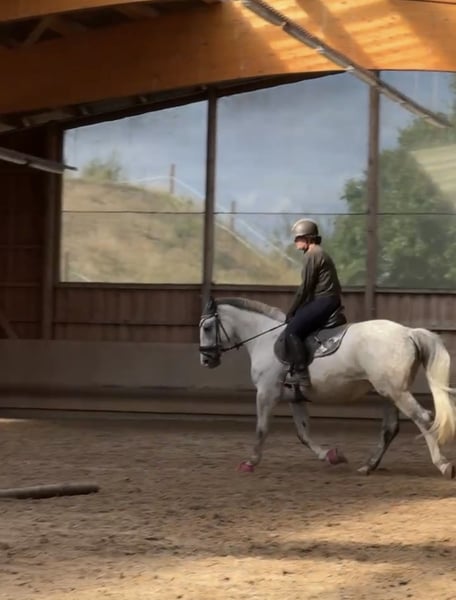 Schweren Herzens trenne ich mich von meiner Stute, da wir reiterlich leider nicht zueinander finden. Sie ist eine charakterstarke Stute und daher kein Anfängerpferd. Mit einem erfahrenen, konsequenten Reiter zeigt sie jedoch ihr Potenzial und arbeitet gut mit. Die tägliche Arbeit mit ihr macht sehr viel Spaß, und sie hat einen tollen, ehrlichen Charakter. Sie hat ein Stockmaß von 1,61m und ist 9 Jahre alt. Kleine Sprünge meistert sie zuverlässig dies konnte sie auf unserem Hofturnier unter Beweis stellen. Ausritte im Gelände macht sie alleine als auch mit anderen Pferden super mit. Sie kennt den Umgang mit Kindern und Hunden. Ich wünsche mir für sie einen passenden Platz mit erfahrener Bezugsperson, bei der sie weiter gefördert wird. Ihre Zähne wurden im November kontrolliert. Sie genießt regelmäßige Ostheopatie Behandlungen. Der Sattel kann mit erworben werden. Er wurde auch erst angepasst. Platz vor Preis! Bei ernsthaftem Interesse freue ich mich über eine Nachricht.