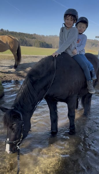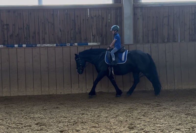 Mit schwerem Herzen, aber aus wohlüberlegten Gründen, suchen wir für unseren siebenjährigen Wallach ein neues Zuhause, in dem er weiter gefördert, geliebt und vielseitig beschäftigt wird. Er ist ein sehr robuster, stabil gebauter Typ mit gutem Fundament. Seit er bei uns ist, war er stets gesund und hatte keinerlei Probleme. Er ist schon immer barhuf und verfügt über sehr gute, harte Hufe. Zu uns kam er dreijährig und wurde von Anfang an schonend, ruhig und mit viel Zeit ausgebildet. Er hat in seinem bisherigen Leben ausschließlich positive Erfahrungen gemacht. Die Grundausbildung erfolgte zunächst viel vom Boden aus: Spaziergänge, Gelassenheitstraining, Vertrauen aufbauen. Von Beginn an war er viel mit Kindern unterwegs, sowohl geführt als auch später geritten. Im Alltag zeigt er sich absolut unerschrocken und geländesicher. Er geht gerne und zuverlässig ins Gelände, auch auf längeren Strecken, und ist dort in allen drei Gangarten sicher zu reiten. Verkehr, Umweltreize und neue Situationen bringen ihn nicht aus der Ruhe. Dressurmäßig ist er solide bis E-Niveau ausgebildet. Dabei wurde stets darauf geachtet, ihn nicht zu überfordern: Nach intensiveren Lernphasen hatte er immer wieder längere Pausen. Als Offenstallpferd konnte er diese Auszeiten wirklich genießen – im Sommer 24/7 auf der Koppel, im Winter im Offenstall. Gerade als etwas kräftigerer Typ hat ihm diese artgerechte Haltung sehr gutgetan und man merkt ihm an, wie ausgeglichen und zufrieden er ist. Auch im Springen zeigt er viel Potenzial und Freude an der Arbeit. Er springt ein schönes, flüssiges Freispringen, ist bereits kleine Parcours gegangen und hat an Stangen- sowie Springgymnastikkursen teilgenommen. Zudem war er mit mir zweimal auf der Geländestrecke, wo er feste Hindernisse kennengelernt hat. Offener Graben, Stufen hoch und runter, Wasser – all das hat er mutig angenommen. Besonders beeindruckend: Er ist freudig ins Wasser galoppiert und anschließend über eine Stufe wieder herausgesprungen. Dabei war er stets motiviert, ehrlich und mit sichtbarem Spaß bei der Sache. Turniererfahrung bringt er ebenfalls mit. Er war mit kleinen Kindern erfolgreich in Führzügelklassen unterwegs, unter anderem mit einer sechsjährigen Reiterin, was sogar dreijährig bereits hervorragend funktioniert hat. Mit einem etwas größeren Kind ist er Schritt-Trab-Wettbewerbe gegangen. Außerdem wurde er von einer erwachsenen Reiterin bereits in einer E-Dressur vorgestellt. Auf dem Turnier zeigt er sich neugierig, mutig und souverän. Deko, fremde Umgebungen und Abreiteplätze stellen für ihn kein Problem dar – er bleibt stets ansprechbar und brav. Zusätzlich hat er an Geschicklichkeitsprüfungen teilgenommen, sowohl geritten als auch geführt mit Kindern, und auch hier mit seiner Gelassenheit und seinem Mitdenken überzeugt. Er ist absolut unkompliziert im Umgang, kennt Kinder, ist verladefromm und läuft selbstständig in den Hänger. Ein echtes Familienpony, das Sicherheit gibt, motiviert mitdenkt und seinem Reiter ein verlässlicher Partner ist – egal ob im Alltag, im Gelände oder auf dem Turnier.