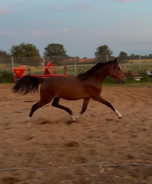 Mit großem Vergnügen biete ich zum Verkauf eine Stute namens Arizona S an – eine wunderschöne, elegante und energiegeladene Pferd mit großem Potenzial! 📍 Grundinformationen: • Name: Arizona • Rasse: Polski Kuc Wierzchowy (p.k.w.) • Alter: eineinhalb Jahre • Farbe: Fuchs 🧠 Charakter und Einsatzmöglichkeiten: Arizona S ist eine ausgeglichene Stute mit ruhigem Temperament, intelligent und arbeitswillig im Umgang mit Menschen. Ein tolles Pferd mit einem wundervollen Herzen. Ihre Schönheit zieht alle Blicke auf sich. 🏇 Bewegung und Eignung: Sie zeigt einen sehr schönen, elastischen Bewegungsablauf – dynamischen Galopp, beeindruckenden Schritt sowie guten Takt und natürliche Balance. Sie besitzt sportliche und dressurale Eignung. 📸 Das Foto, aufgenommen an der frischen Luft, zeigt Arizona S in Bewegung – dynamisch, gesund und in ausgezeichneter Kondition. 🩺 Gesundheitszustand: • Regelmäßig entwurmt und gewerkelt • Gesund, ohne Verletzungen • Ohne Nerven- oder Fehlstellen