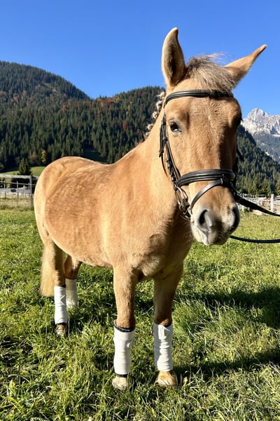 Brav & fleißig – 5-jährige Ponystute mit Sonderlackierung sucht Nachwuchsreiter:in! Unsere hübsche 5-jährige Ponystute sucht ein neues Zuhause bei pferdebegeisterten Kindern oder Jugendlichen mit Unterstützung durch erfahrene Erwachsene. Sie besticht nicht nur durch ihren lieben, ehrlichen Charakter, sondern auch durch ihre besondere Fellfarbe – eine echte Sonderlackierung, die sie optisch zu einem Hingucker macht. Im täglichen Umgang ist sie ausnahmslos brav und anständig – immer gut händelbar, ohne Unarten. Aktuell wird sie von Teenagern an der Longe geritten und zeigt sich dabei stets kooperativ, lernbereit und nervenstark. Sie bringt genügend Go und Arbeitsfreude mit, um sportlich ambitionierten jungen Reiter:innen in Ausbildung viel Freude zu bereiten. Dabei bleibt sie stets freundlich und ehrlich – ideal also für Kinder oder Jugendliche mit ein wenig Reiterfahrung oder im geführten Rahmen. - 5 Jahre alt - Ponystute - Besondere Fellfarbe / Sonderlackierung - Brav, ehrlich & zuverlässig - Mit angenehmem Go - Keine Unarten, gut händelbar - Aktuell von Jugendlichen an der Longe geritten - Kein Anfängerpony – altersbedingt nur für Reiter:innen mit Erfahrung oder unter Anleitung - Probereiten an der Longe möglich Wir freuen uns auf Anfragen und stehen gerne für weitere Infos oder Terminabsprachen zur Verfügung!