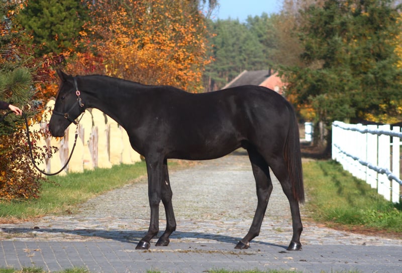 For sale 2,5 yo lovely gelding in jet black color He is by Emark - amazing black dressage polish stallion, compete in high level. (last picture) Also many more best Anglo Arabian horses such as Jalienny , Efekt, Veritas etc...in the pedigree. Grandsire The Anglo Arab stallion All That Jazz was imported to Biddesden from Victoria in Australia as a colt. His sire is the Arab stallion SS City Lights who was bred in the USA and nearly 16 hands. His dam is Belingo, an Australian Thoroughbred by Saulingo. Jazz was always a tall colt with great scope to his stride. He has the softest and springiest of canters as all who have been lucky enough to ride him will attest. He was taken through the ranks to advanced level in British Eventing by William Fox-Pitt and went hunting for a season with the South and West Wilts. His foals have been successful in the show ring and have made a promising start in eventing, with their big strides and elegant steady head positions. Also australian, both arabian and thouroughbred horses are well known and appreciated for their hardness and durability and have achieved many successes in international endurance ! LORENZO AA is Of exceptional beauty , long-legged and well built, with elastic and extensive movement. Long neck, beautiful subtle head. He is now over 170 cm high at 2 5 yo cm, and final estimate height about 175+ cm !!! Born and raised on big meadows, pastured every day with a group of youngsters. He has exceptional fantastic character, absolutely people oriented, very friendly and calm. Interesting for sport or leisure rides . Full pedigree, e-pass, vaccinated, dewormed etc. He will be sold ONLY TO A BEST HOME ! Located western Poland near PL/D border . Transport can be arranged . Contact by WhatsApp + 48 513 179 245