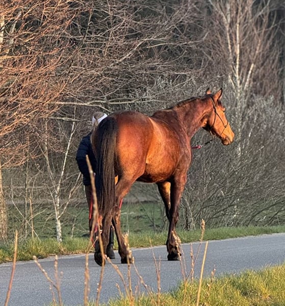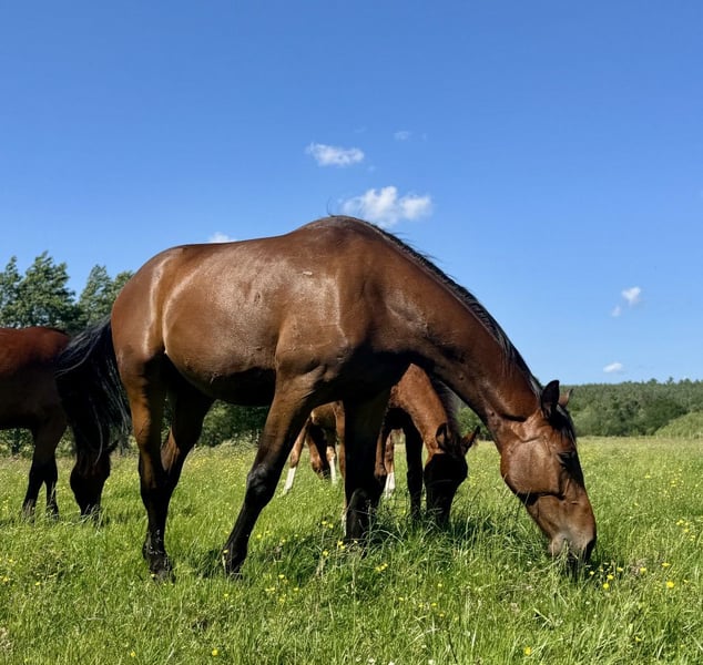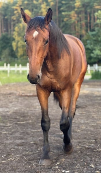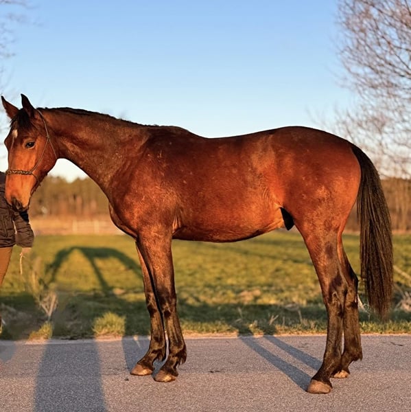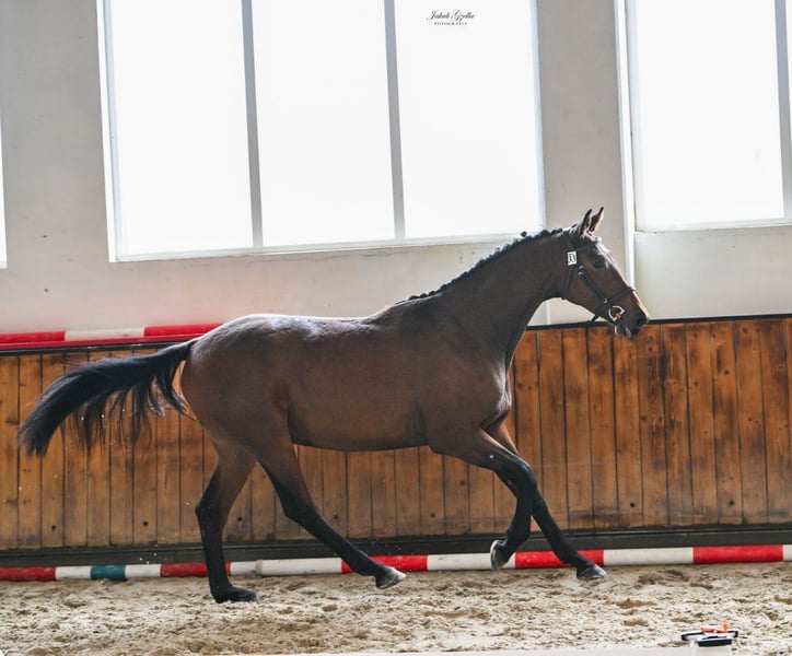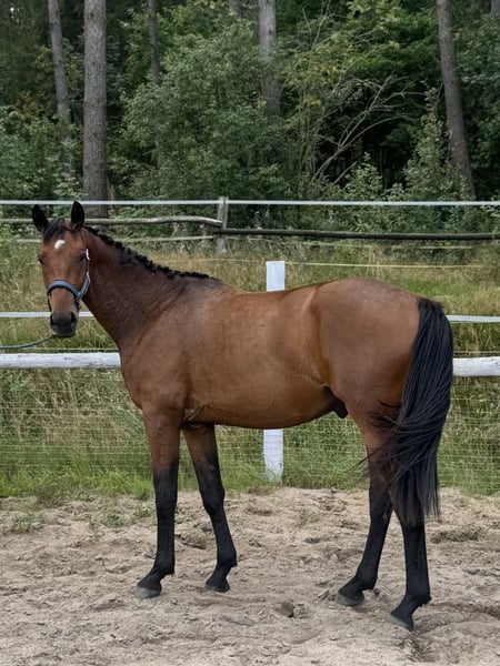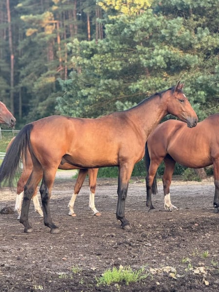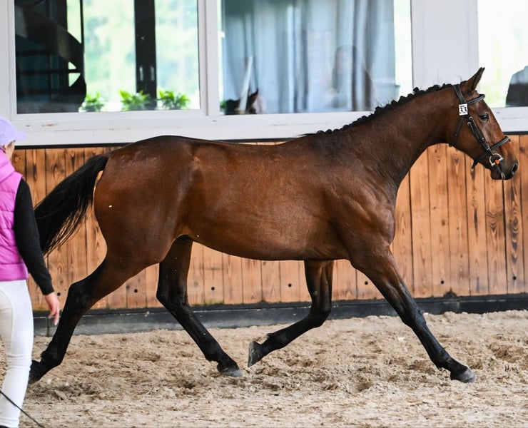 Denali (born June 3, 2023) is a son of the stallion EBANO han, an exceptionally handsome horse with a modern conformation and above-average elasticity in all gaits. Ebano is the winner of the Polish Horse Breeding Qualification and Field Test of Merit, the Polish Young Horse Champion 2023, and the winner of the Central European Young Horse Championships in Dressage for 6-year-olds CDI-W in Pilisjászfalu, Hungary. In 2025, he represented Poland at the World Young Horse Championships in Verden, where he scored over 81% and ranked among the world’s top young dressage horses. Ebano is a progeny of the licensed stallion ESCAMILLO, who twice earned medals at the World Young Horse Championships. Ebano passes on a modern type, excellent dressage lines, and the majority of his offspring inherit his elevated, elastic movement. The dam, mare Dyrma, is a daughter of the Hanoverian stallion Rytm, a highly influential sire in Polish sport horse breeding. Rytm is the sire of multiple medalists at the Polish WKKW Championships—gold, silver, and bronze—as well as a participant at the European Championships for Young Riders. He is the sire of the well-known stallion Wizjoner, widely used in private breeding (including the sport stallion Rewizjon), and of the mare Rytmika, who competed in show jumping up to C1 level. Rytmika was a finalist at MPMK-A, and other notable offspring include the geldings Walentino (finalist at MPMK-C), Lira, and Olitara. In show jumping, the mare Alhambra and Rytmika performed well in C-class competitions. The mare Merra competed internationally in the junior category. In dressage, the geldings Senegal and Arsen, as well as the mare Wirra—a finalist at MPMK-A—have achieved notable results. Dyrma carries a significant infusion of full English blood. Her pedigree includes valuable sires influential in sport horse breeding, such as Dixieland xx, Oltis xx, Dipol xx, Deer Leap xx, and Kemal xx. Her half-brother is the licensed C1 show jumper stallion Diego. Her third dam, Diksana xx (by Dipol xx), produced the stallion Grot, who earned licensing not only in Poland but also in the Czech Republic. Denali is a very pleasant and well-behaved horse in everyday life. He is eager to cooperate with humans and has a friendly disposition.