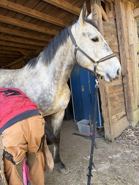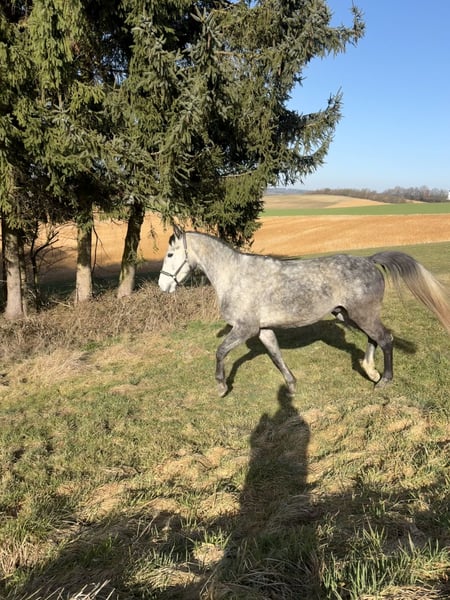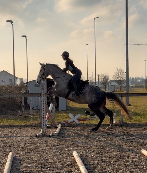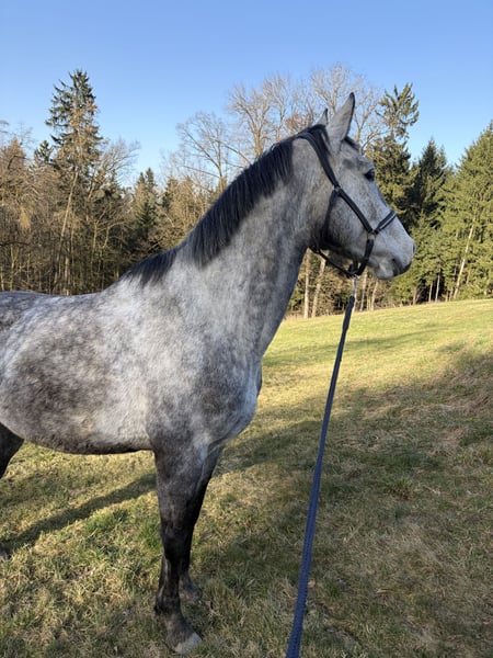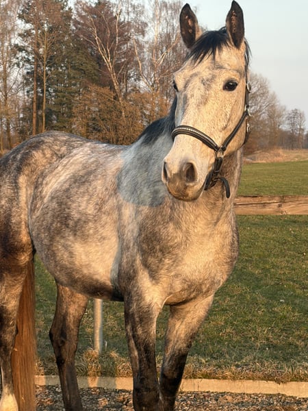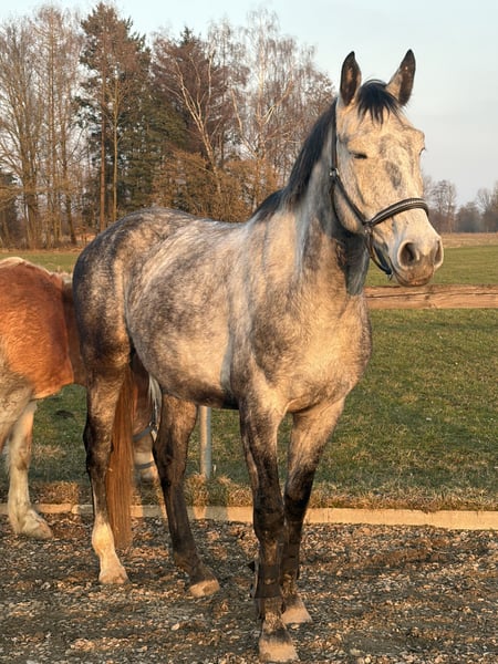 Schweren Herzens suche ich für meinen 4-jährigen Wallach, ein neues Zuhause. Er ist ein Polnisches Sportpferd, väterlicherseits KWPN gezogen, mit interessanter springbetonter Abstammung. Er ist ein großrahmiger, schicker Wallach mit angenehmem Wesen, viel Ausstrahlung und einem tollen Kopf. Er wurde bei uns in Ruhe und ohne Druck aufgebaut und zeigt sich dabei sehr ehrlich, lernwillig und menschenbezogen. Unter dem Sattel ist er seit ca. 4–5 Monaten richtig in Arbeit. Wir haben den Schwerpunkt bewusst auf Gelände, Vertrauen und Alltagssicherheit gelegt. Er geht allein und in der Gruppe brav ins Gelände, ist gut händelbar und zeigt sich auch auf fremden Plätzen unkompliziert. Auf dem Platz kennt er die Grundlagen und wird aktuell wieder weiter angeschoben. Er macht das sehr gut, lernt schnell und möchte gefallen. Erste kleine Sprünge hat er ebenfalls gemacht und zeigt sich dabei motiviert, mutig und ehrlich. Aufgrund seiner Abstammung und seines Wesens ist er als vielseitiges Nachwuchspferd interessant — für jemanden, der ein junges Pferd weiter in Ruhe ausbilden möchte. Über den Winter wurde er nochmal weggestellt, da er noch einmal deutlich gewachsen ist. Nun wird er wieder angeschoben und entwickelt sich sehr schön weiter. Im Umgang ist er freundlich, offen und gut zu händeln. Er lässt sich führen, putzen, satteln und ist im Alltag unkompliziert. Auch Kinder können ihn führen und auf ihm sitzen. Trotzdem ist er natürlich kein Anfänger- oder klassisches Kinderpferd, sondern ein junges Pferd, das altersentsprechend weiter gefördert werden möchte. Er kam ursprünglich mit wenig Vertrauen zum Menschen zu uns und wurde hier mit Ruhe und Geduld aufgebaut. Heute zeigt er sich offen, freundlich und neugierig. Für ihn wünsche ich mir einen pferdeerfahrenen, fairen Menschen, der ihn weiter mit Gefühl begleitet. Eine große AKU inklusive vollständiger Röntgenbilder von Hals bis Fuß liegt vor. Ohne Befund ! Er wird nur aus persönlichen Gründen und krankheitsbedingt meinerseits schweren Herzens abgegeben. Er geht ausschließlich an den besten Platz, kein Notverkauf. Auf jeden Fall gilt bei ihm Platz vor Preis Bei ernsthaftem Interesse gerne melden. Gerne auch per WhatsApp