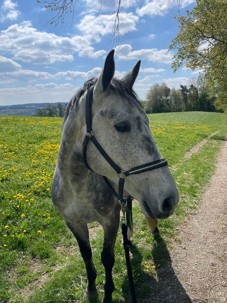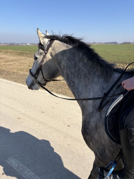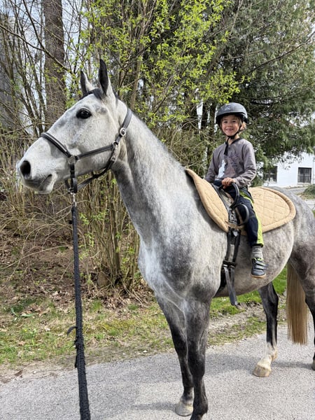 Schweren Herzens suche ich für meinen Wallach, ein neues Zuhause. Er ist ein Polnisches Sportpferd, väterlicherseits KWPN gezogen, mit interessanter springbetonter Abstammung. Er ist ein großrahmiger, schicker Wallach mit angenehmem Wesen, viel Ausstrahlung und einem tollen Kopf. Er wurde bei uns in Ruhe und ohne Druck aufgebaut und zeigt sich dabei sehr ehrlich, lernwillig und menschenbezogen. Unter dem Sattel ist er seit ca. 4–5 Monaten richtig in Arbeit. Wir haben den Schwerpunkt bewusst auf Gelände, Vertrauen und Alltagssicherheit gelegt. Er geht allein und in der Gruppe brav ins Gelände, ist gut händelbar und zeigt sich auch auf fremden Plätzen unkompliziert. Auf dem Platz kennt er die Grundlagen und wird aktuell wieder weiter angeschoben. Er macht das sehr gut, lernt schnell und möchte gefallen. Erste kleine Sprünge hat er ebenfalls gemacht und zeigt sich dabei motiviert, mutig und ehrlich. Aufgrund seiner Abstammung und seines Wesens ist er als vielseitiges Nachwuchspferd interessant — für jemanden, der ein junges Pferd weiter in Ruhe ausbilden möchte. Über den Winter wurde er nochmal weggestellt, da er noch einmal deutlich gewachsen ist. Nun wird er wieder angeschoben und entwickelt sich sehr schön weiter. Im Umgang ist er freundlich, offen und gut zu händeln. Er lässt sich führen, putzen, satteln und ist im Alltag unkompliziert. Auch Kinder können ihn führen und auf ihm sitzen. Trotzdem ist er natürlich kein Anfänger- oder klassisches Kinderpferd, sondern ein junges Pferd, das altersentsprechend weiter gefördert werden möchte. Er kam ursprünglich mit wenig Vertrauen zum Menschen zu uns und wurde hier mit Ruhe und Geduld aufgebaut. Heute zeigt er sich offen, freundlich und neugierig. Für ihn wünsche ich mir einen pferdeerfahrenen, fairen Menschen, der ihn weiter mit Gefühl begleitet. Eine große AKU inklusive vollständiger Röntgenbilder von Hals bis Fuß liegt vor. Ohne Befund ! Er wird nur aus persönlichen Gründen und krankheitsbedingt meinerseits schweren Herzens abgegeben. Er geht ausschließlich an den besten Platz, kein Notverkauf. Bei ernsthaftem Interesse gerne melden. Gerne auch per WhatsApp 015560226571