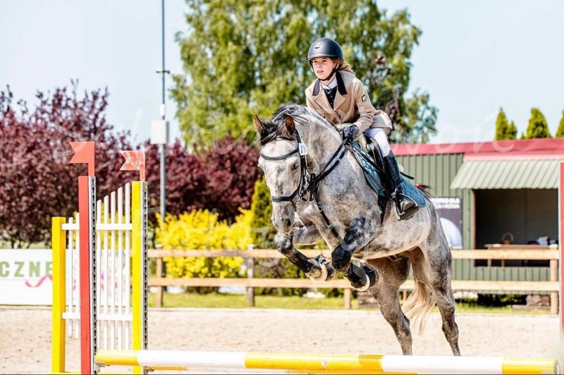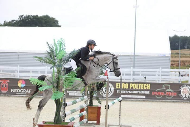 Hektor is a young stallion of Malopolska breed, sired by a Silesian stallion. He moves correctly in all three basic gaits and has good movement. He has completed his first jumping training. Calm, balanced, and eager to cooperate. Learns quickly. Brave and confident in the field, unafraid of anything. Easy to handle. Well-built, healthy, and free of vices. We will only sell him to responsible and experienced owners.