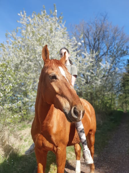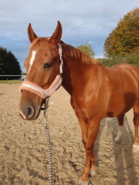 Schweren Herzens muss ich nun diesen Schritt gehen. Ich suche für meine liebevolle Stute ein neues Zuhause, in dem sie rundum glücklich sein kann. Sie ist 2014 geboren, ein polnisches Warmblut mit einem Stockmaß von 1,56 und einem Körpergewicht von 500Kg und ein absolutes Herzenspferd. Anhänglich, verschmust und sehr ehrlich wenn man gut mit ihr umgeht. Sie zeigt klar, wenn ihr etwas unangenehm ist, tritt oder beißt aber nicht. Wer lernt, ihre Körpersprache zu lesen, wird einen treuen, verständnisvollen Freund fürs Leben gewinnen. Mit anderen Pferden ist sie sehr verträglich, da gab es noch nie probleme. Sie ist also rangniedrig. Luna war früher im Schulbetrieb, deshalb möchte ich auf keinen Fall, dass sie wieder in einen solchen Alltag kommt. Aktuell wird sie zwei Mal pro Woche geritten, zwei Mal pro Woche locker longiert und einmal Bodenarbeit ansonsten genießt sie ihre Koppelzeit. Sie ist ein Diätpferd und neigt zu Übergewicht, besonders im Sommer, daher muss die Fütterung sorgfältig angepasst werden. Im Sommer lebt sie rund um die Uhr auf der Koppel, im Winter steht ihr eine Box mit Paddock zur Verfügung. Sie ist barhuf, hat gesunde, stabile Hufe, ein unauffälliges Blutbild (von 2024) und bisher keine Operationen. Mir ist besonders wichtig, dass sie gesund und gymnastizierend geritten/ gearbeitet wird. Sie liebt das feine Arbeiten, reagiert gut auf korrekte Hilfen und macht zum Beispiel Schenkelweichen am Halsring. Druck oder übermäßige Zügelführung sind nichts für sie und das wünsche ich mir auch nicht für sie. Luna braucht jemanden, der Freude daran hat, sie regelmäßig und gesund zu bewegen. Sie ist immer super motiviert und hat an allem spaß egal ob Stangenarbeit, Dressurarbeit, Tricks, ... Früher hatte sie starken Gurt- und Sattelzwang aufgrund von einem unpassenden Sattel. Sie hat einen Maßsattel bekommen und seitdem zeigt sie kein Gurt- oder Sattelzwang mehr bei mir und meiner Schwester. Bei fremden Personen ist sie anfangs skeptisch und reagiert auf Berührungen sensibel aber nicht bösartig. Charakterlich ist sie eine Stute, die gehört und verstanden werden möchte. Sie testet Fremde manchmal aus, ist aber unkompliziert und absolut cool, wenn man fein mit ihr arbeitet. Vertrauen und ein respektvoller Umgang stehen für sie an erster Stelle. Ich möchte sie auch als reines Freizeitpferd abgeben ohne Turnierambitionen. Sie ist überhaupt nicht schreckhaft und man kann eigentlich alles mit ihr machen. Mir liegt sehr am Herzen, dass sie in erfahrene Hände kommt. Deshalb möchte ich sie zunächst Ein bis zwei Monate zur Verfügung stellen, damit wir uns gegenseitig kennenlernen können und sie sich an die neue Person gewöhnen kann. Erst wenn das Bauchgefühl von beiden Seiten stimmt, erfolgt der endgültige Verkauf. Ich suche jemanden, der Zeit, Erfahrung und Freude am gesund erhaltenden Training hat und meiner Stute das liebevolle Fünf-Sterne-Zuhause bieten kann, das sie verdient. Abgegeben wird sie mit Maßsattel (+5500€ VB). Weiteres Zubehör würde ich einfach so mitabgeben. AKU darf auf eigene Kosten gerne gemacht werden Weitere Infos erfolgen bei der privaten Kontaktaufnahme. Bitte stellen sie sich vor und erzählen sie gerne schon etwas über sich und ihre Vorstellungen