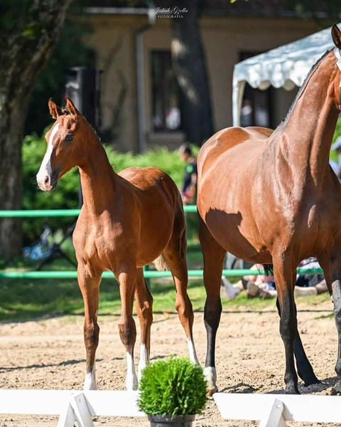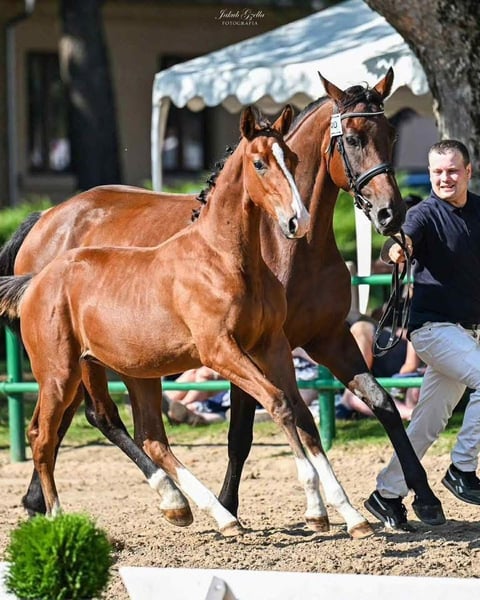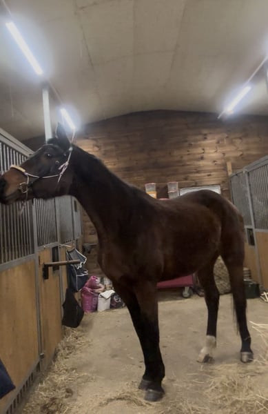 For sale is an exceptional mare, born in 2010, approximately 16.1 hh, with a Hakim conformation. She was born and raised in Rzeczna, where she spent most of her life as a broodmare. She has competed at championships, passed a aptitude test at age five, and completed a training internship. I was informed that her offspring compete in show jumping up to 130 cm. This mare has Oldenburg bloodlines, with some Thoroughbred infusion from her dam, but she has inherited only the best qualities: lightness, elasticity, a willing heart for work, combined with gentle handling. Her build is very correct: strong, healthy legs, a well-formed croup, a graceful neck even without intensive work, a spacious gallop, and a relaxed, free-flowing trot. Her appearance is almost baroque—she is extremely charming and noble. She is very versatile on the ground, knows rein-back, lateral movements, and works on a lunge line almost independently. She can go on the most delicate aids, without a bit, and often self-sets herself up. She is not a horse you need to wrestle with; in fact, the gentler the handler, the more enjoyable working with her becomes. Her character is truly exceptional: calm, communicative, affectionate, and very human-oriented. During work, she “asks questions,” responding to body language and intention. Raised on pastures in a herd, she loves free movement and social contact with other horses, naturally releasing tension through yawning and relaxation. She will thrive in a large herd, on pasture, or as a companion in a private stable. She is very intelligent, will not allow herself to be dominated, and will avoid problems. It is important to me that she is treated as a partner in her new home, with respect for her nature. If she is confined or not given enough attention, she may withdraw and become nervous; but to someone who provides her with space and calmness, she will give her whole heart. As a proven mother, she is independent, with healthy, strong, and noble foals. Her health is excellent; she does not lameness, and at the end of December, extensive blood tests were performed, with supplementation introduced. Her teeth are done, vaccinations started, and her hooves are in the process of correction (to be trimmed). She has been checked by a physiotherapist; she is relaxed and has no contraindications. She does not require expensive or specialized feed. No signs of nutritional deficiencies, very well-behaved, and calmly “savors” her food. She eats hay from a net, consumes grass pellets, and urinates in one spot in her stall, remaining clean. This mare is ideal for breeding, but also as a family horse, for groundwork, respectful riding, or even shared development in dressage, western riding, or agility. She has jumping bloodlines, although she has not jumped with me. She is a horse with a big heart and enormous potential with daily, attentive human contact. Completely safe, but I emphasize she is a broodmare in condition. Despite her appearance, she is an experienced mother, remembers a lot, but still needs consistent, gentle training like any young horse. Since December, she has been working on the ground, strengthening her back, revisiting gymnastics without stress or rush, which she loves and tries very hard to do. She is the dream horse for any woman who values relaxation alongside horses, enjoys scenic rides, or is looking for a proven mother. I would love to give her a lifelong home, but my life situation has changed. It would be wonderful to find her a home near Tricity so I can visit her occasionally. The horse is located near Pruszcz Gdański, and transportation can be arranged. More information via private message. Please also watch the videos showing her work and character, linked below. At the end, there are photos of her foals from championships. Best contact via SMS at 785970082.