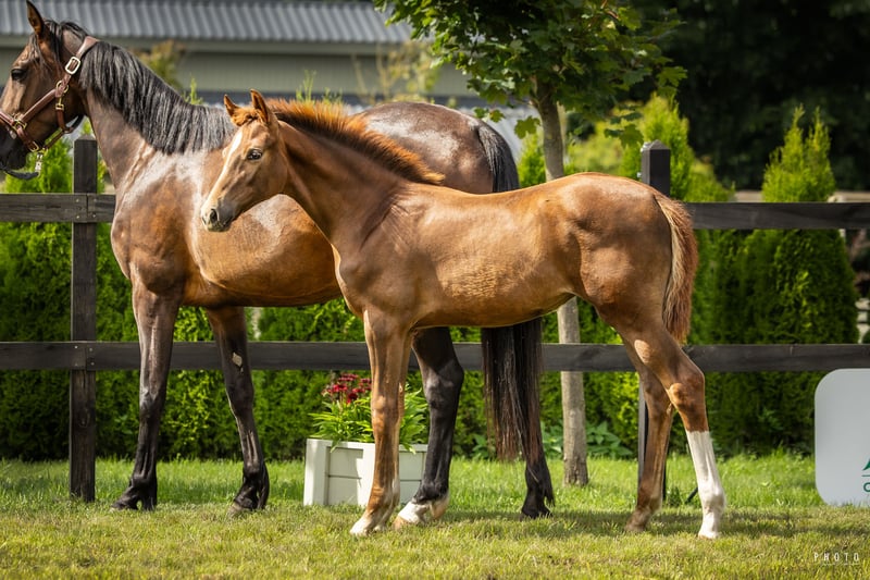 Rosalia Only FW ist eine Stute, die von dem äußerst eleganten, edlen und vielversprechenden jungen Hengst Uncle Joe van’t Meulenhof abstammt. Sie wurde in der belgischen Nachwuchssichtung für Springpferde äußerst hoch bewertet, insbesondere für ihre Fahrbarkeit und ihr Springpotenzial. Einerseits stellt sie eine Hoffnung dar, das Erbe des großartigen Hengstes Ladykiller xx durch den Sieger des Weltcups, Libero H (Jos Lansink), fortzusetzen. Andererseits hat die mütterliche Linie, aus der sie stammt, in den letzten Jahren weltweit Anerkennung erlangt, mit herausragenden Springpferden wie Nixon van’t Meulenhof, Emerald van’t Ruytershof und Pegase van’t Ruytershof. Die Mutter von Rosalia ist die Stute River Kwai de Muze, die trotz ihres jungen Alters (geb. 2017) bereits einen lizenzierten Hengst im Pedigree hat – den vierjährigen Viento de Muze, der bereits auf Turnieren startet und zur Hengstkollektion de Brabander gehört. Vater von River Kwai ist der Klon des legendären E.T. Han, der den Weltcup im Springen unter Hugo Simon (AUT) gewann. Als Wallach konnte er keine Nachkommen hinterlassen. Wie alle Stuten auf der Zuchtstätte Joris de Brabander hat River Kwai eine hervorragende mütterliche Linie, in der vier Stuten auf internationalem Niveau zwischen 140 und 160 cm erfolgreich gestartet sind. Zu den Reitern, die sie geritten haben, zählen unter anderem Lorenzo De Luca und Maikel van de Vleuten. Die Mutter von River Kwai brachte einen weiteren Top-Hengst hervor – KEPT SECRET DE L’AMITIÉ – sowie die internationale GP-Springstute QNOKKE DE MUZE, die den zweiten Platz bei den Belgischen Meisterschaften für 7-Jährige unter Olivier Philippaerts belegte. Diese außergewöhnliche Mutterlinie hat auch berühmte Nachkommen hervorgebracht, darunter den Europameister Glock’s London (Gerco Schroeder), seinen Vollbruder Casimir de la Pomme, Golden Hawk, den Weltmeister der 6-Jährigen A Pikachou de Muze sowie zahlreiche weitere international erfolgreiche Springpferde.