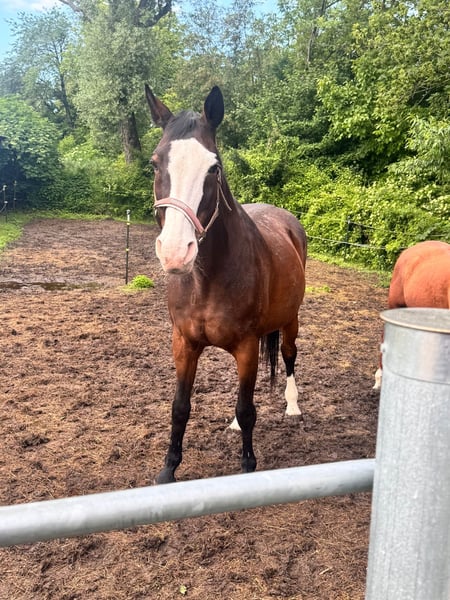Puppe is trail safe, suitable for beginners, and is being offered for a good home as a companion due to an injury. Her age is not noticeable, and she is herd-compatible. She wishes for a home where she can still do a little bit and be cared for.