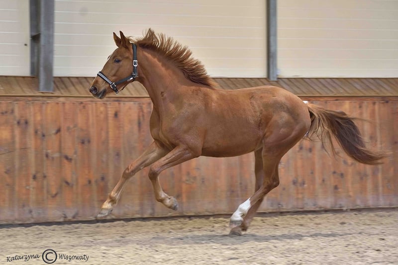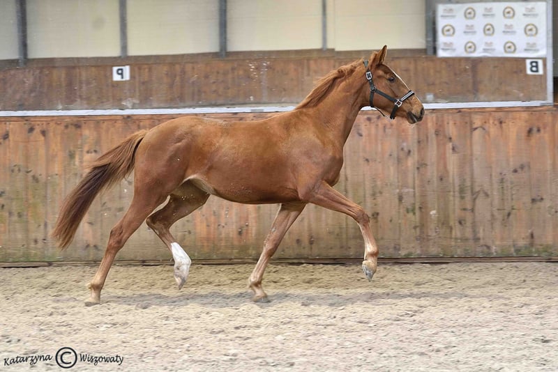Cichoń Stallions präsentiert die eigene Zuchtstute Quantum of Gold, eine fast dreijährige Stute, Tochter des Hengstes Goldfinger VDT und der Stute Quaris Jak Malowana, die die Gene von Top-Hengsten wie Quaterback und Londonderry vereint. Quantum of Gold ist eine äußerst freundliche und gut erzogene Stute, die im täglichen Umgang sehr umgänglich ist und über einen ausgeprägten Charakter verfügt. Diese positiven Eigenschaften werden durch ihre exterieur- und bewegungsbezogenen Anlagen ergänzt, die beispielsweise beim nationalen Championat der Rasse SP, wo sie für Typ, Körperbau und Trab jeweils 8 Punkte erhielt, gewürdigt wurden. Für den neuen Besitzer kann diese Stute sowohl ein hervorragendes Sportpferd sein als auch eine wertvolle Zuchtstute, dank ihrer bedeutenden Abstammung. Aus diesem Grund bieten wir zukünftigen Käufern einen Rabatt von 50 % auf die Samen unserer Hengste an, sofern die Stute für die Zucht genutzt wird.