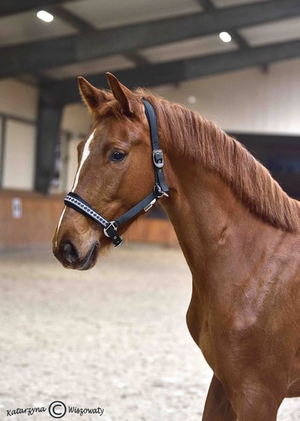 Cichoń Stallions oferuje własnej hodowli, niespełna 3-letnią klacz Quantum of Gold – córkę ogiera Goldfinger VDT, od klaczy Quaris Jak Malowana, która łączy geny takich topowych ogierów jak Quaterback i Londonderry. Quantum of Gold to niezwykle przyjacielska, grzeczna w codziennej obsłudze klacz, o bardzo dobrym charakterze. Tym atutom towarzyszą jej predyspozycje eksterierowe i ruchowe, docenione m.in. podczas Ogólnopolskiego Czempionatu Koni Rasy SP, gdzie za typ, pokrój i kłus, otrzymała oceny 8 punktów! Dla nowego właściciela klacz ta może być doskonałym koniem sportowym, ale także wartościową klaczą hodowlaną, z uwagi na jej walory rodowodowe. Z tego względu przyszłemu nabywcy oferujemy 50% zniżki na nasienie naszych ogierów, w przypadku decyzji o hodowlanym wykorzystaniu klaczy.