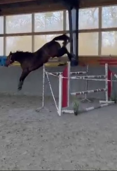 Mother was successful in international sport up to 145cm. Her daughter has a top character. Super sweet. Problem-free. Just started under saddle and has jumped 3 times with a rider, 1 time in the field super brave! Has a very good canter and jumps everything that is in front of her. In free jumping (tried twice up to 130cm). Good X-rays. She is very easy to ride. More info, pictures or videos via WhatsApp :)