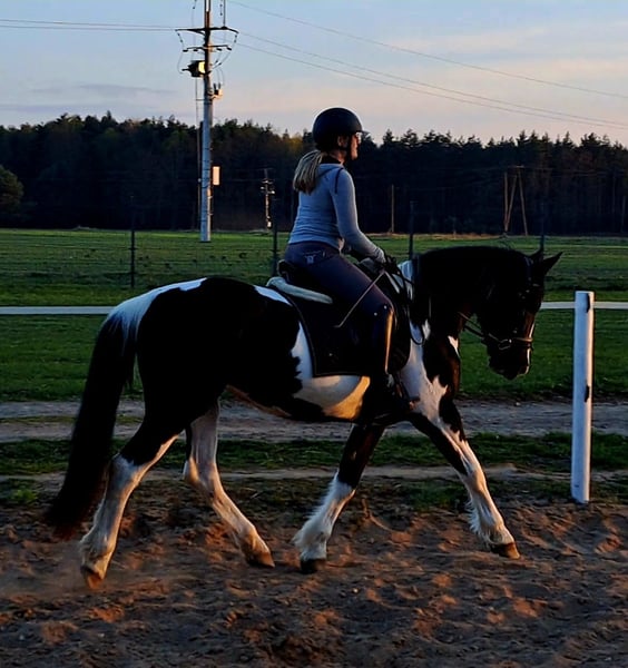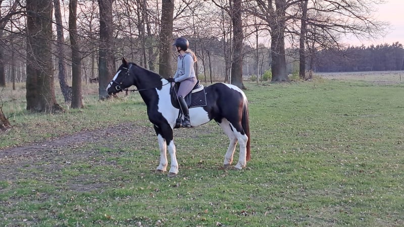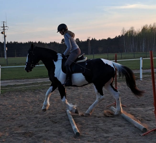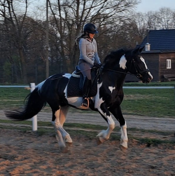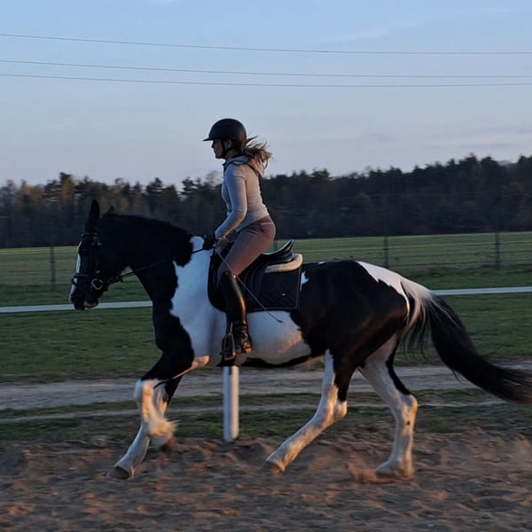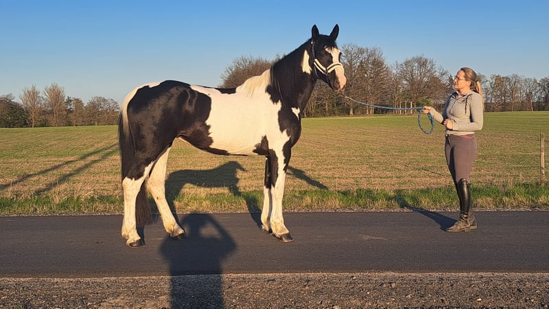 Beauty!! 💗🍬🍭🎠 Wonderful mare Betty with an excellent character 5 years old, 16.1 hh. She is a stunning mare, born in 2021. With her elegant pinto coat and a height of 165 cm, she is not only a eye-catcher but also a lovely dressage horse. She was briefly ridden by her previous owner. This mare is characterized by her friendly and open nature. She is well-behaved, easy to handle, and familiar with dogs and cats. Her movements are supple and expressive. A great leisure horse. The mare is healthy and herd-safe. If interested or for further questions, I am happy to assist. Viewings and trial rides are possible by arrangement. Location near Görlitz